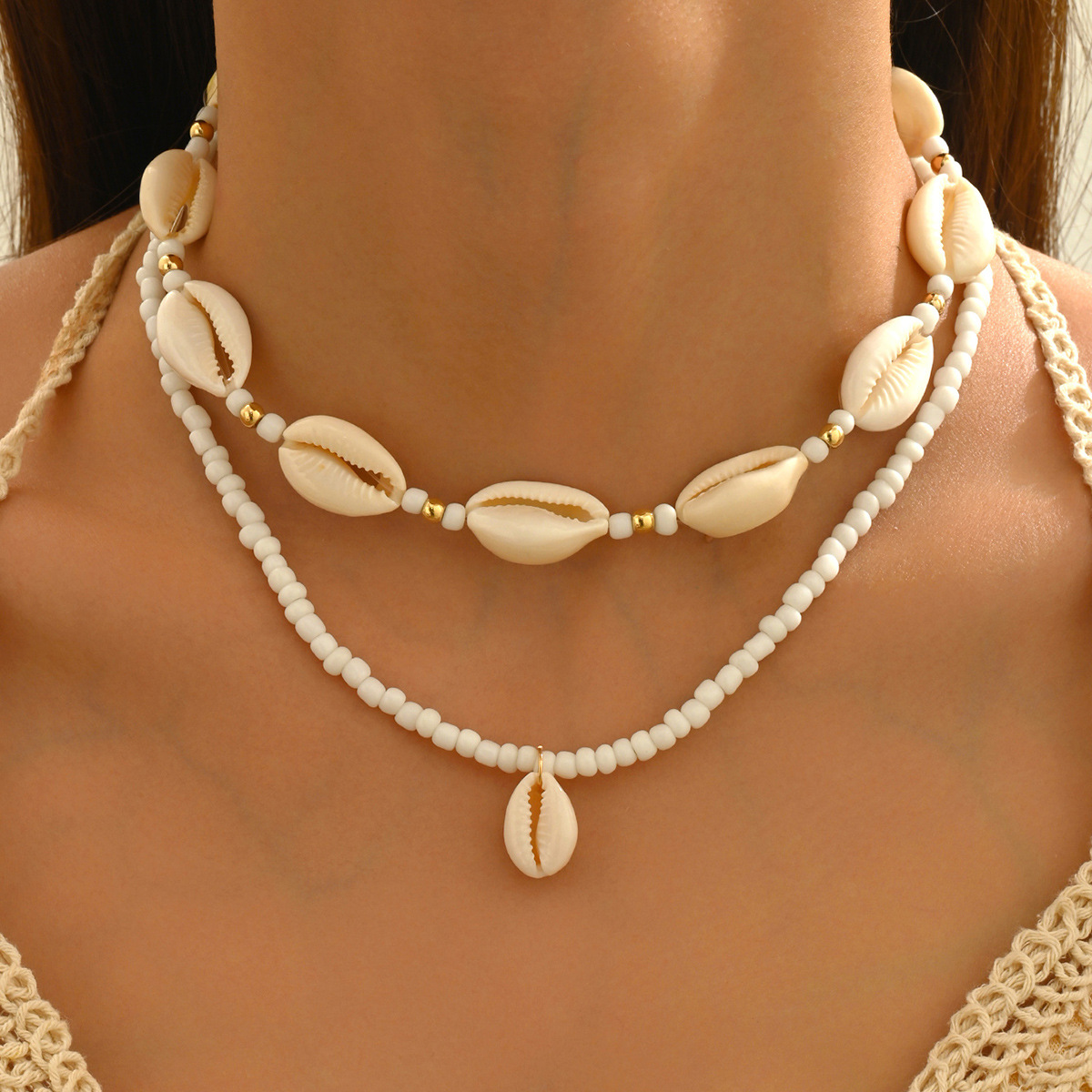 ヨーロッパとアメリカの夏休みオーシャンスタイルライスビーズシェルネックレスレトロ手織りビーチ二層鎖骨チェーン