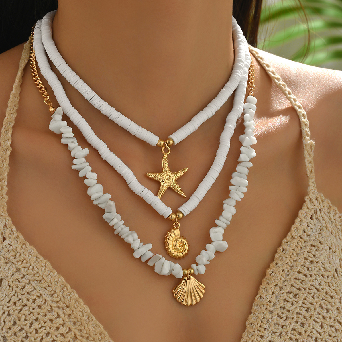 ヨーロッパとアメリカの国境を越えた売れ筋ファッションビーチオーシャンスタイルヒトデシェル合金ペンダントネックレスソフトクレイビーズネックレス