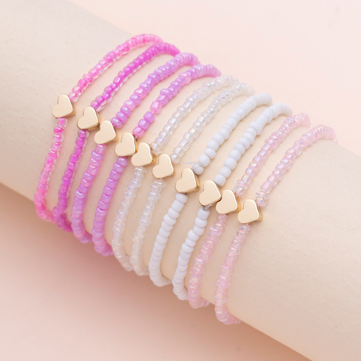 ヨーロッパとアメリカの国境を越えた新しい夏のドーパミン手作りビーズガラスライスビーズ弾性ピーチハートアクセサリーハンドジュエリーセット