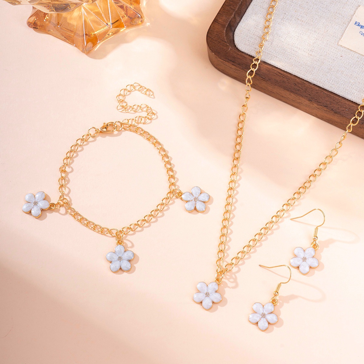 欧米の国境を越えた人気ファッション森系金属滴油花ブレスレットボヘミアンキャンディー色イヤリングネックレスセット