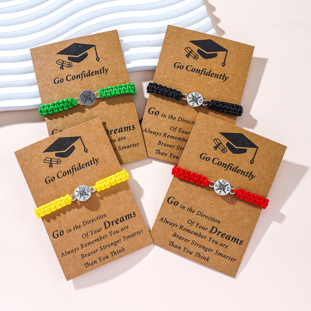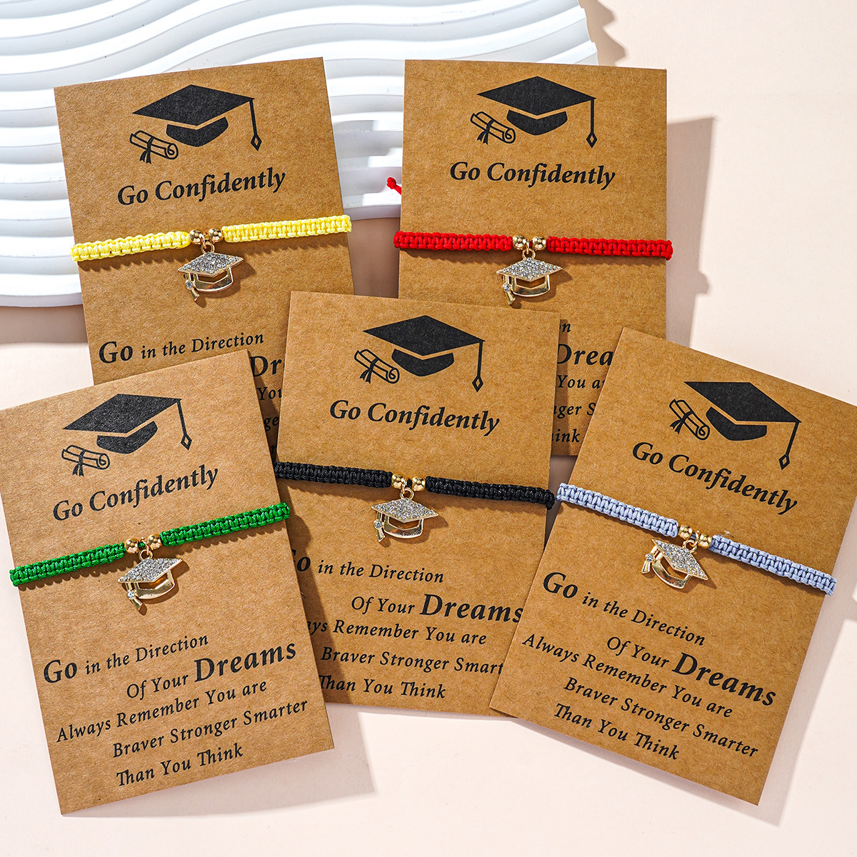 卒業シーズン シンプルな合金学士の帽子 調節可能なハンドロープ カード付き 編み込みブレスレット 自信を持って行く