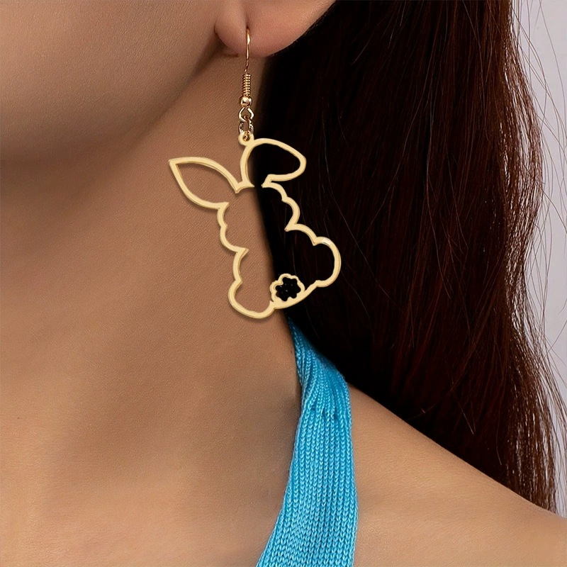 ヨーロッパとアメリカの国境を越えた売れ筋ニッチな個性非対称ウサギのイヤリング中空デザインかわいい学生デイリーイヤリング