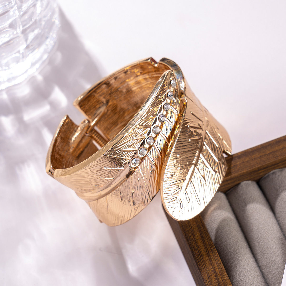 ヨーロッパとアメリカの国境を越えた売れ筋ニッチな個性のパンクスタイルのメタルオープンバックルワイドバージョンの葉で囲まれたスプリングバックルレディースブレスレット