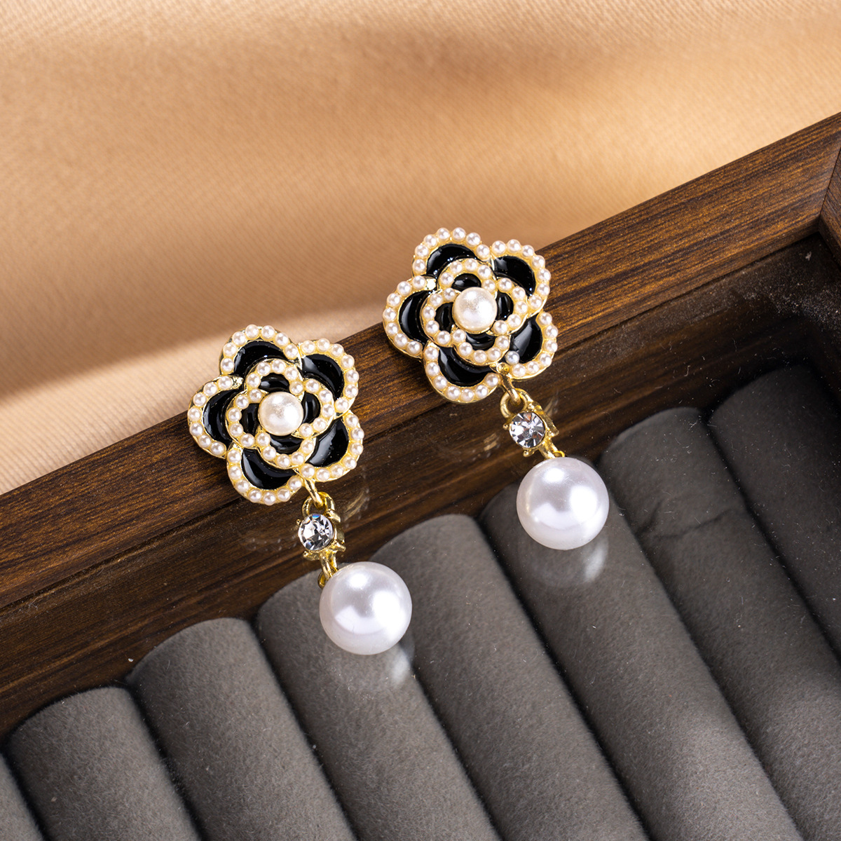 欧米のクロスボーダー熱売レトロなツバキの花のジルコンの滴油の気質の花の真珠のペンダントのイヤリングのファッション的な耳飾り