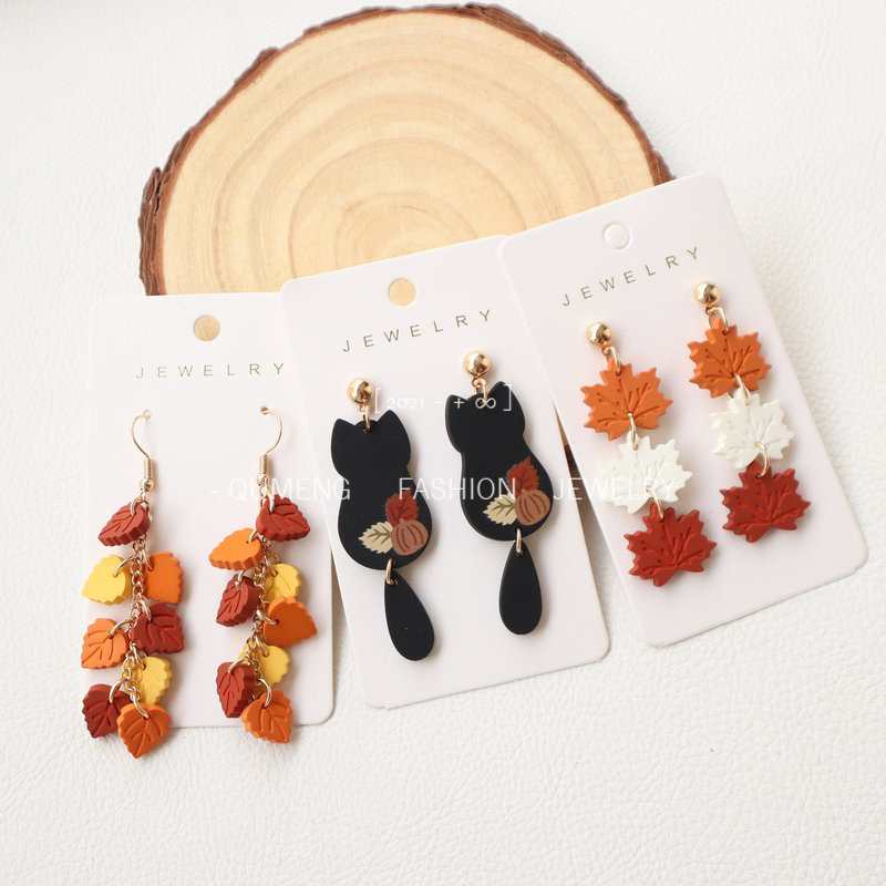 越境新型秋冬アクリルかわいい猫のカエデの葉は柔らかい陶のスプレーのイヤリングのファッションの気質のイヤリングをまねます。