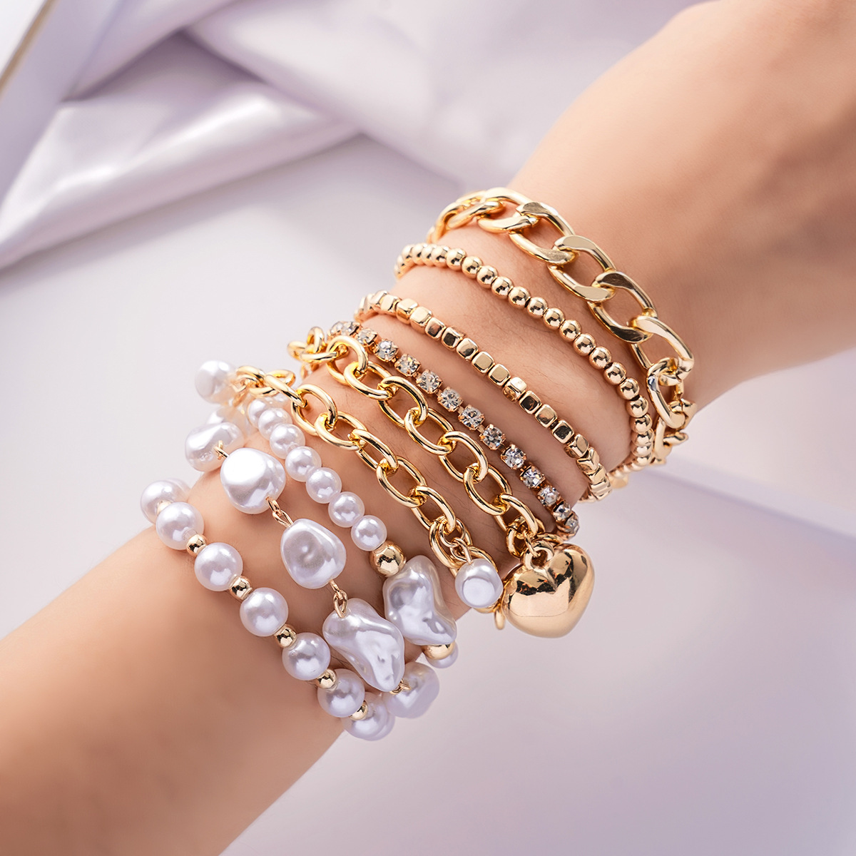 欧米の国境を越えた新しい幾何学チェーンは真珠の愛のブレスレットの9セットのファッション的なレトロな気質のデザイン感を模倣している
