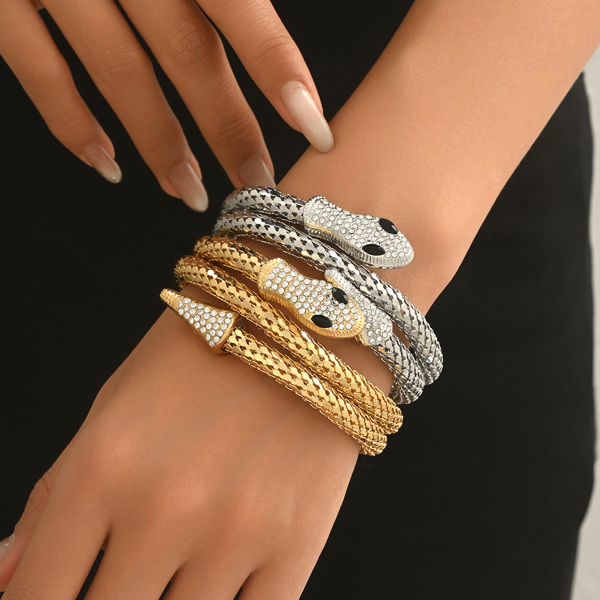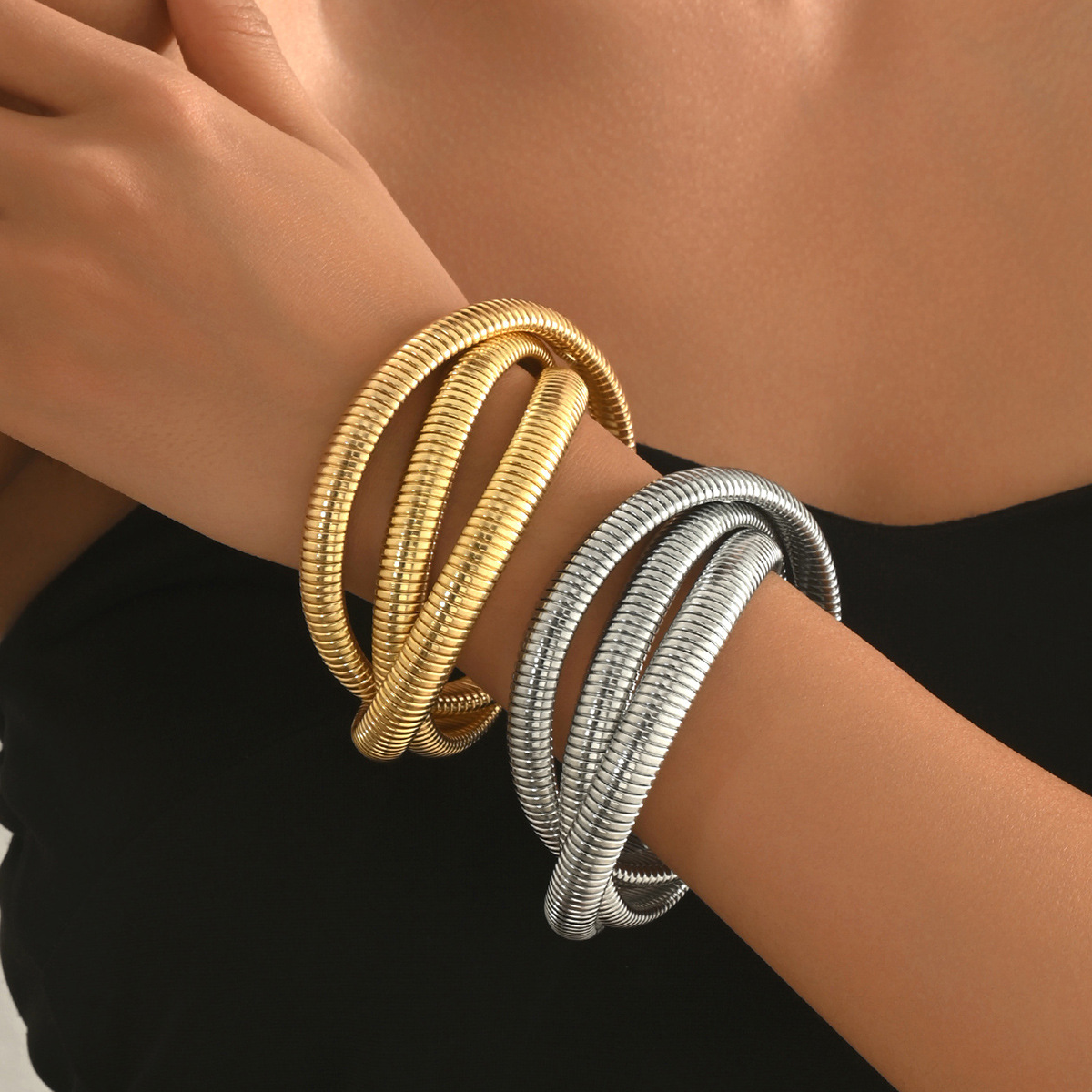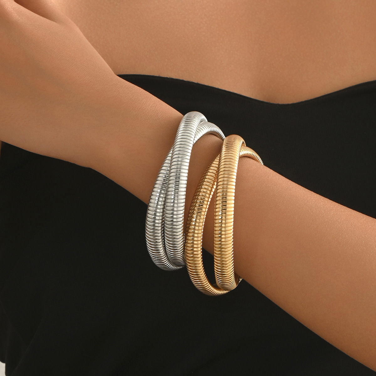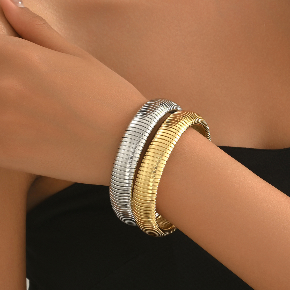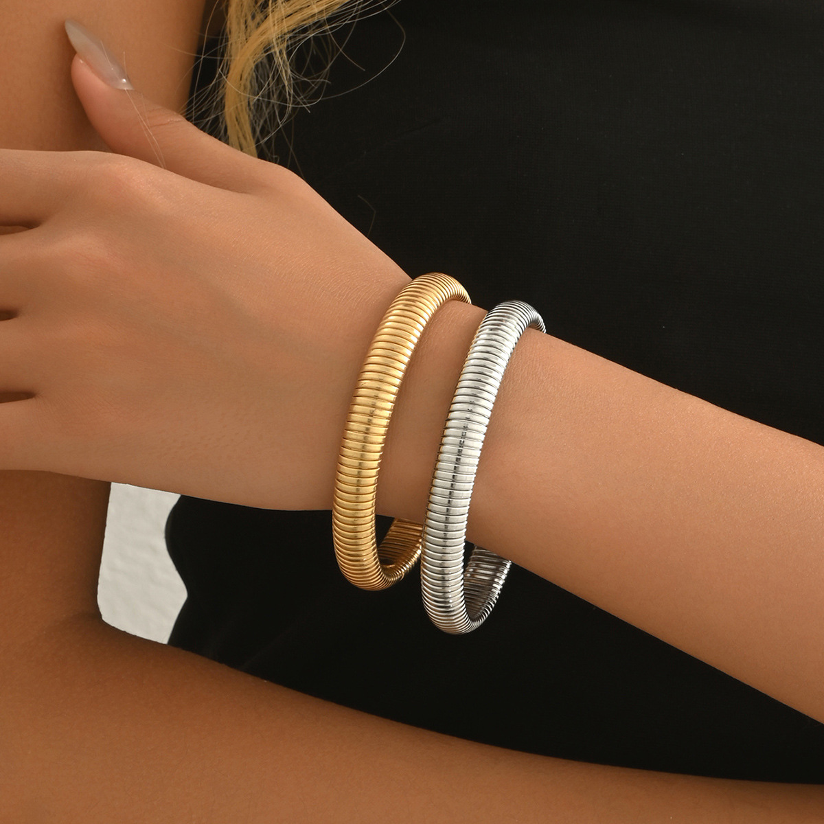 欧米の越境ファッションのレトロなアイデアの縦条の金属の蛇の骨の太い腕輪の小さい大衆の個性の弾力性のきわめてシンプルな輪