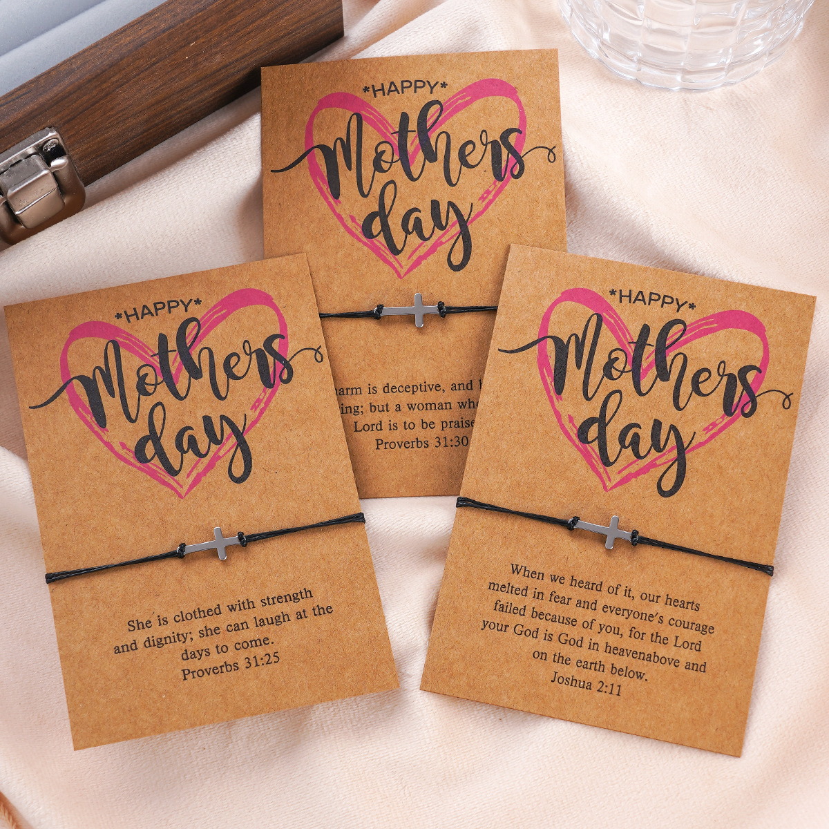 欧米の国境を越えた新しいアイデア母の日カードの鎖はワックスの糸を調節してステンレスの十字の手を編むことができます。