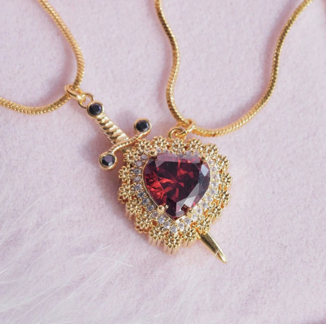 アマゾンはレトロな赤い愛のジルコンの耳のボタンのアイデアの指輪のハート型のペンダントのネックレスのセットの女性を売ります。