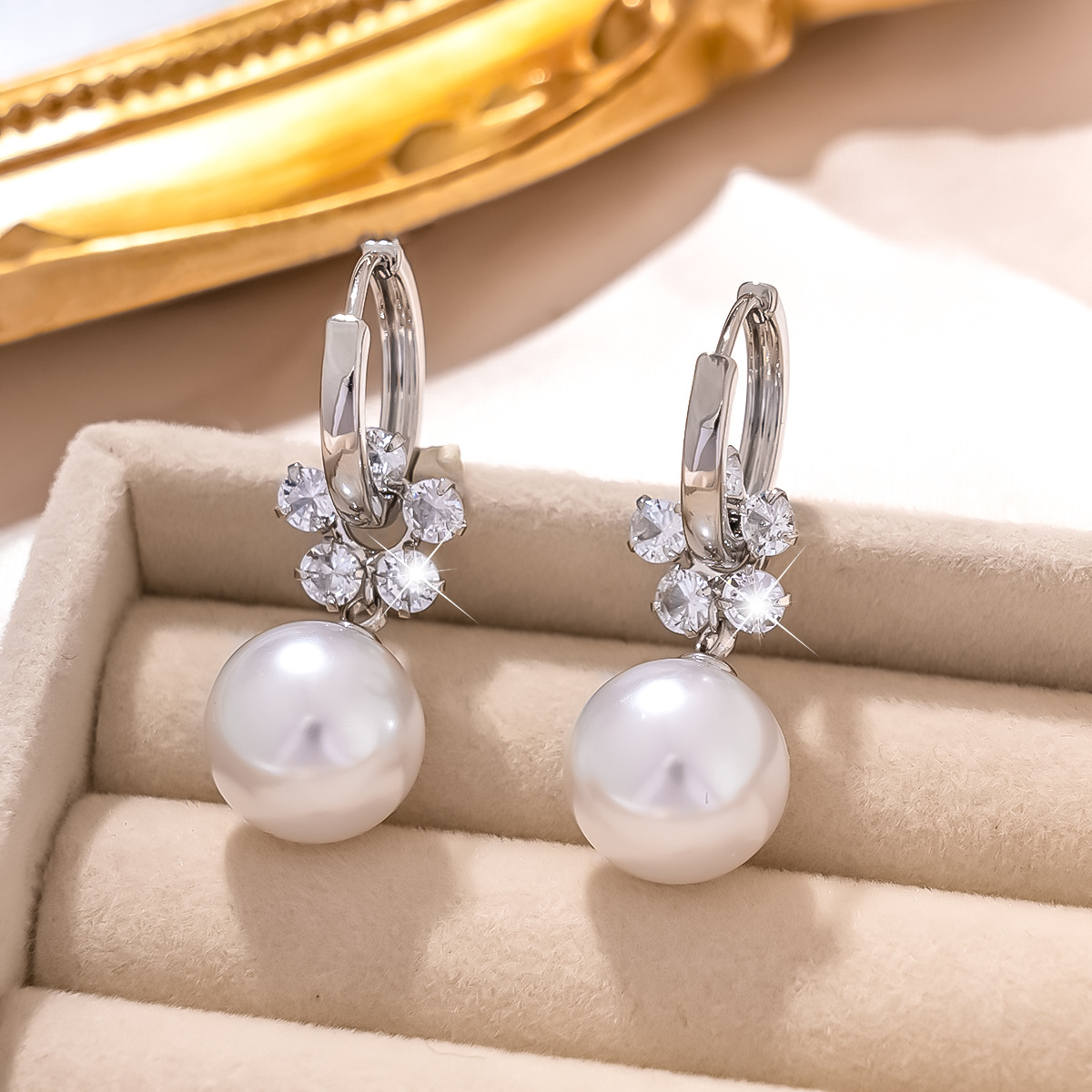 欧米のファッションの新型の精巧で優雅な真珠のジルコンの花のイヤリングをまねます。