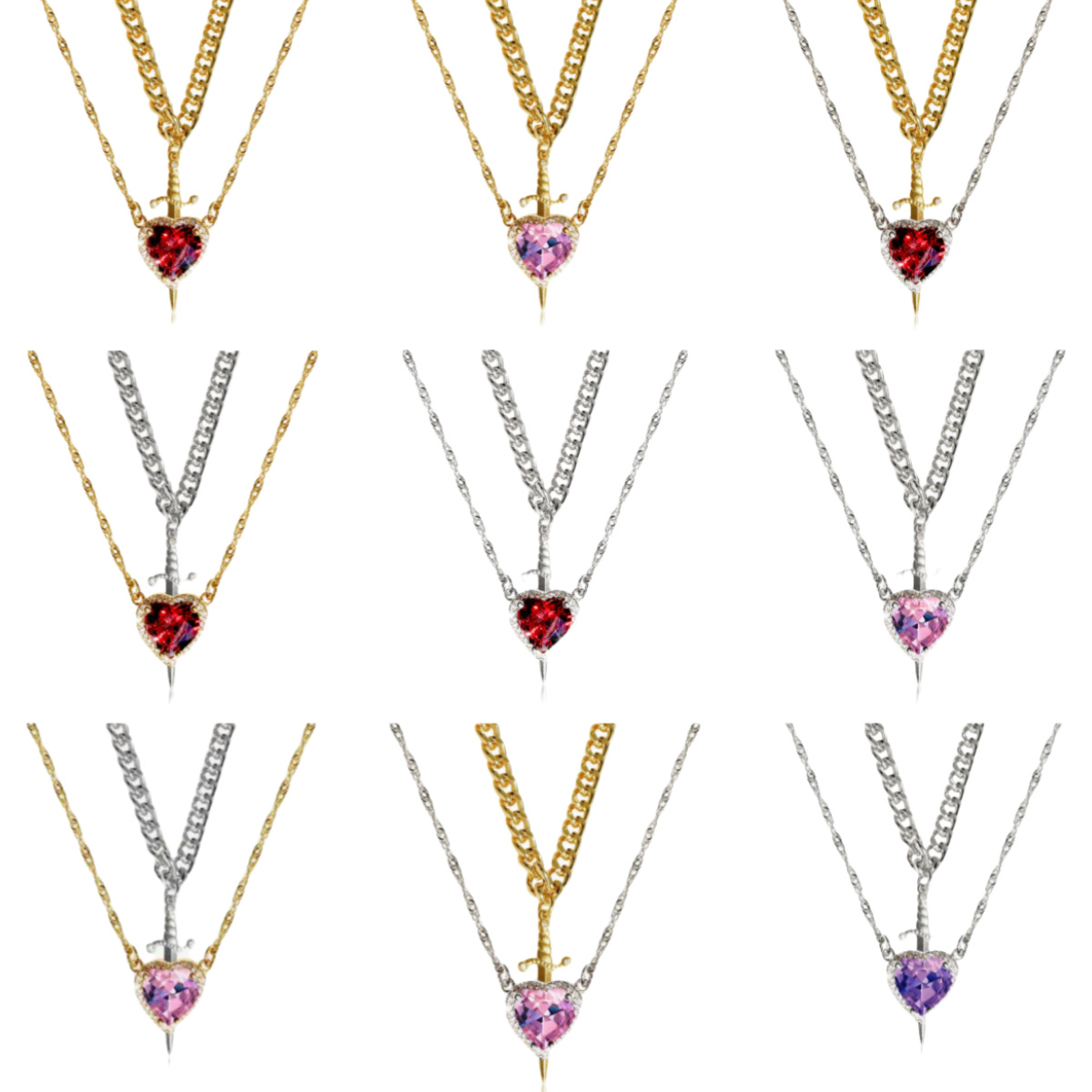 欧米の人気フランスのレトロなステンレスの海洋の心の愛の剣のネックレスのセットのプレゼントのネックレスの鎖