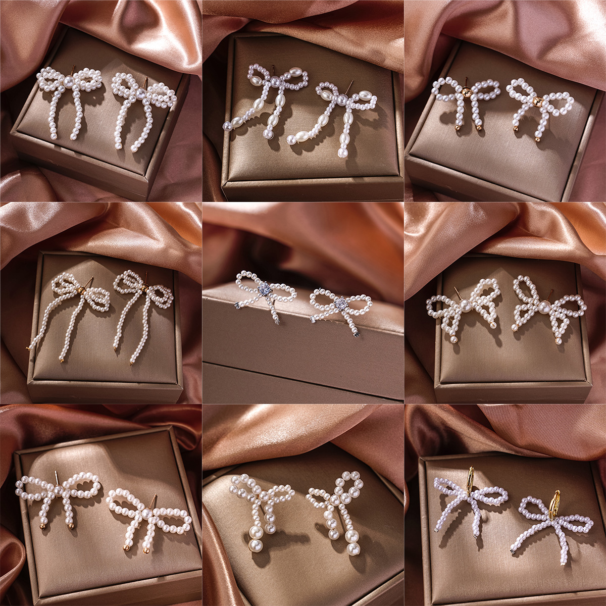 欧米のレトロなins風の蝶結びは真珠のフリンジのピアスの女性のシンプルなイヤリングのbowearingをまねます。