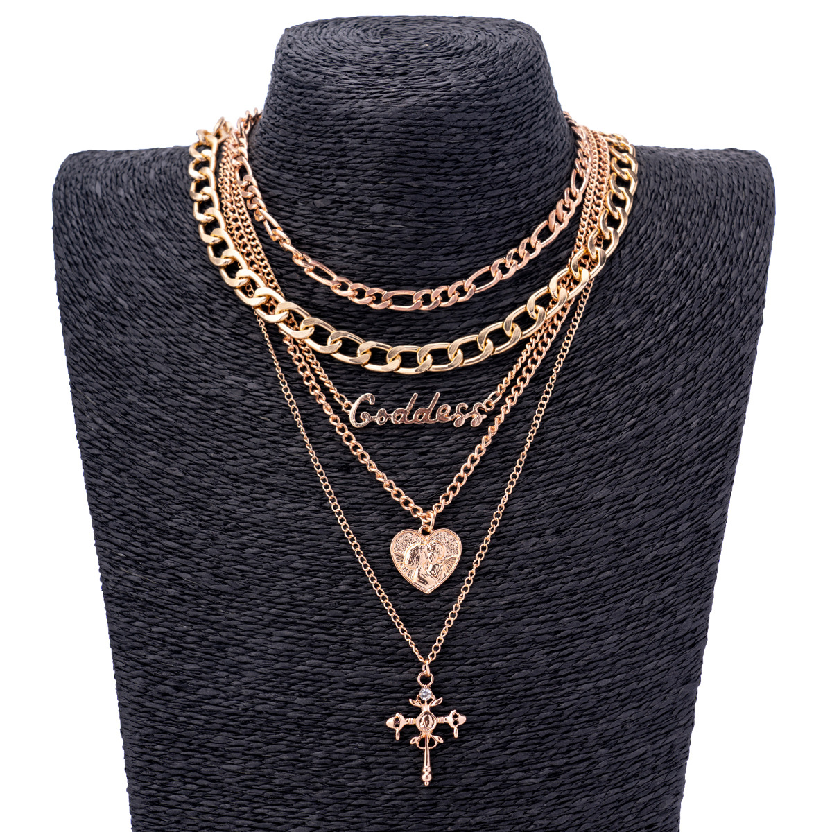 欧米のクロスボーダーのレトロな多層のレリーフの十字架の愛の人はネックレスの女性のヒップホップの個性のアルファベットのチェーンのようです。