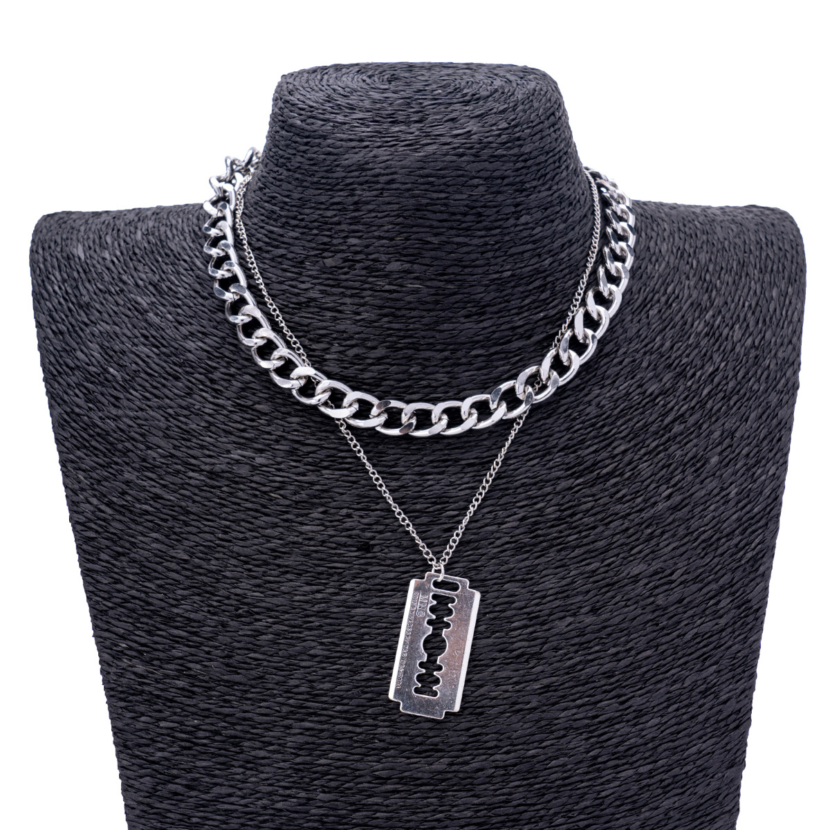 欧米のクロスボーダーの個性的な光沢面の刃の幾何学は誇張して太いアルミニウムの鎖insヒップホップペンダントのネックレスの男女の同金を誇張します。