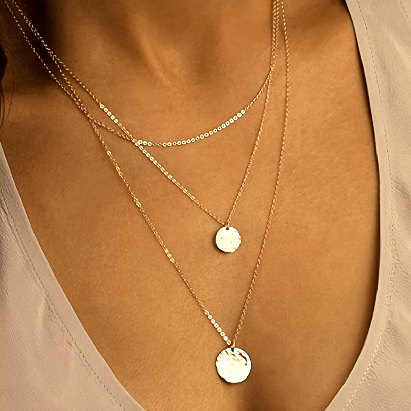 欧米のクロスボーダーの人気ファッションのシンプルな合金のチェーンの多層の円形のスパンデックスペンダントのネックレスの女性の日常