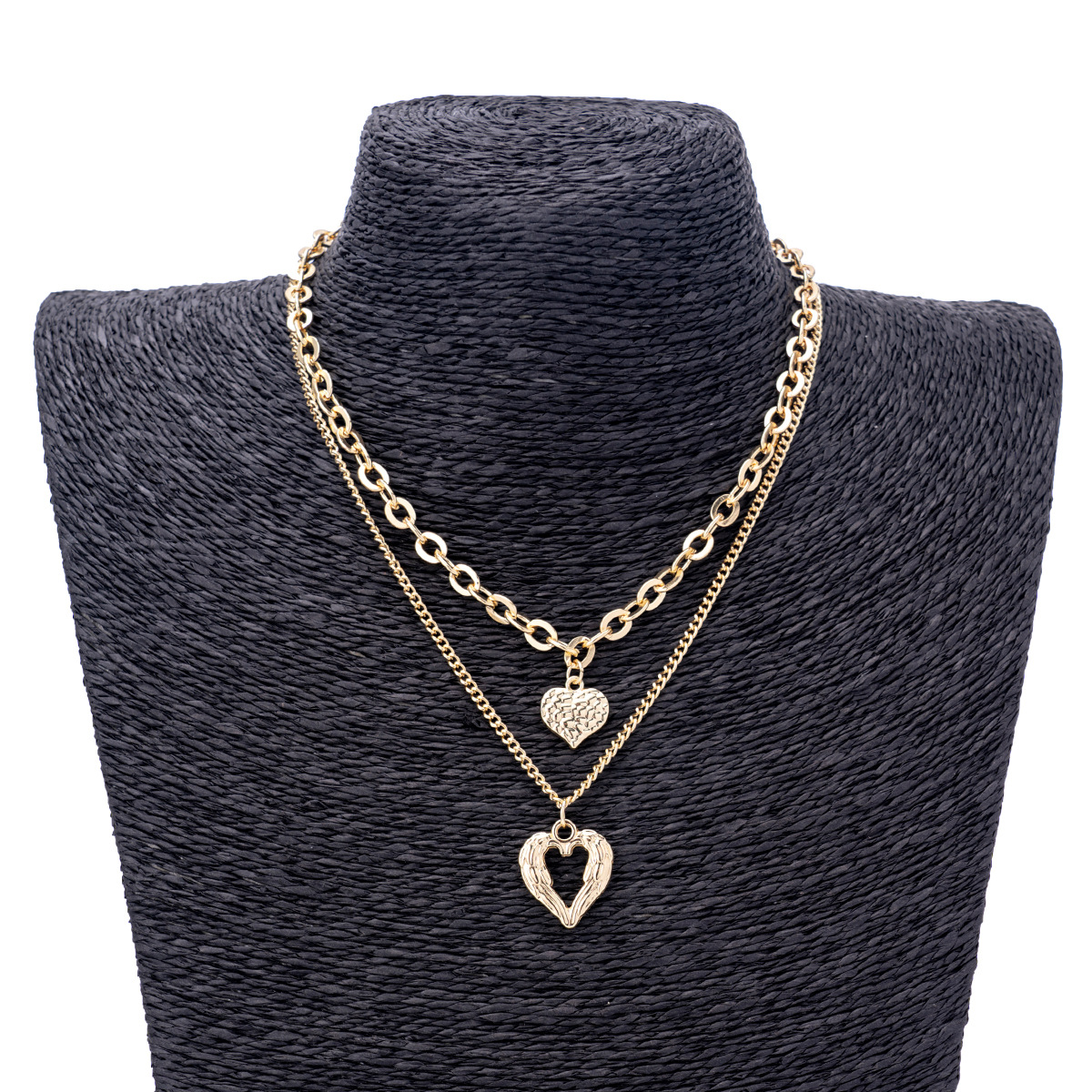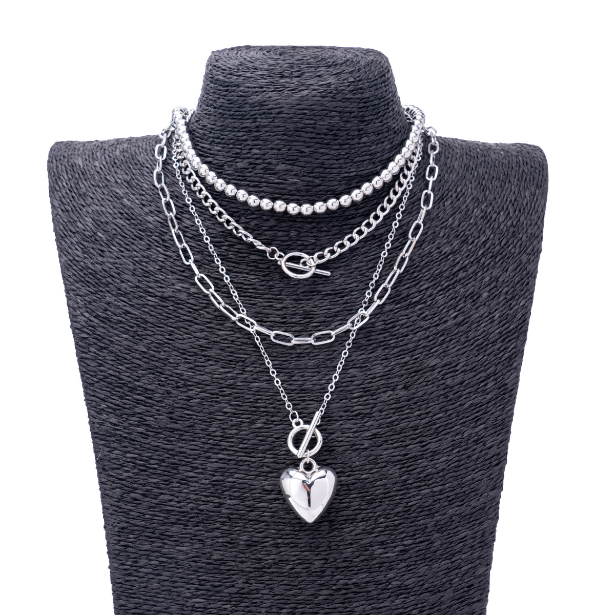 欧米のクロスボーダー熱売CCB愛多層ネックレス桃心ペンダント個性創意アクセサリーINS鎖骨チェーン