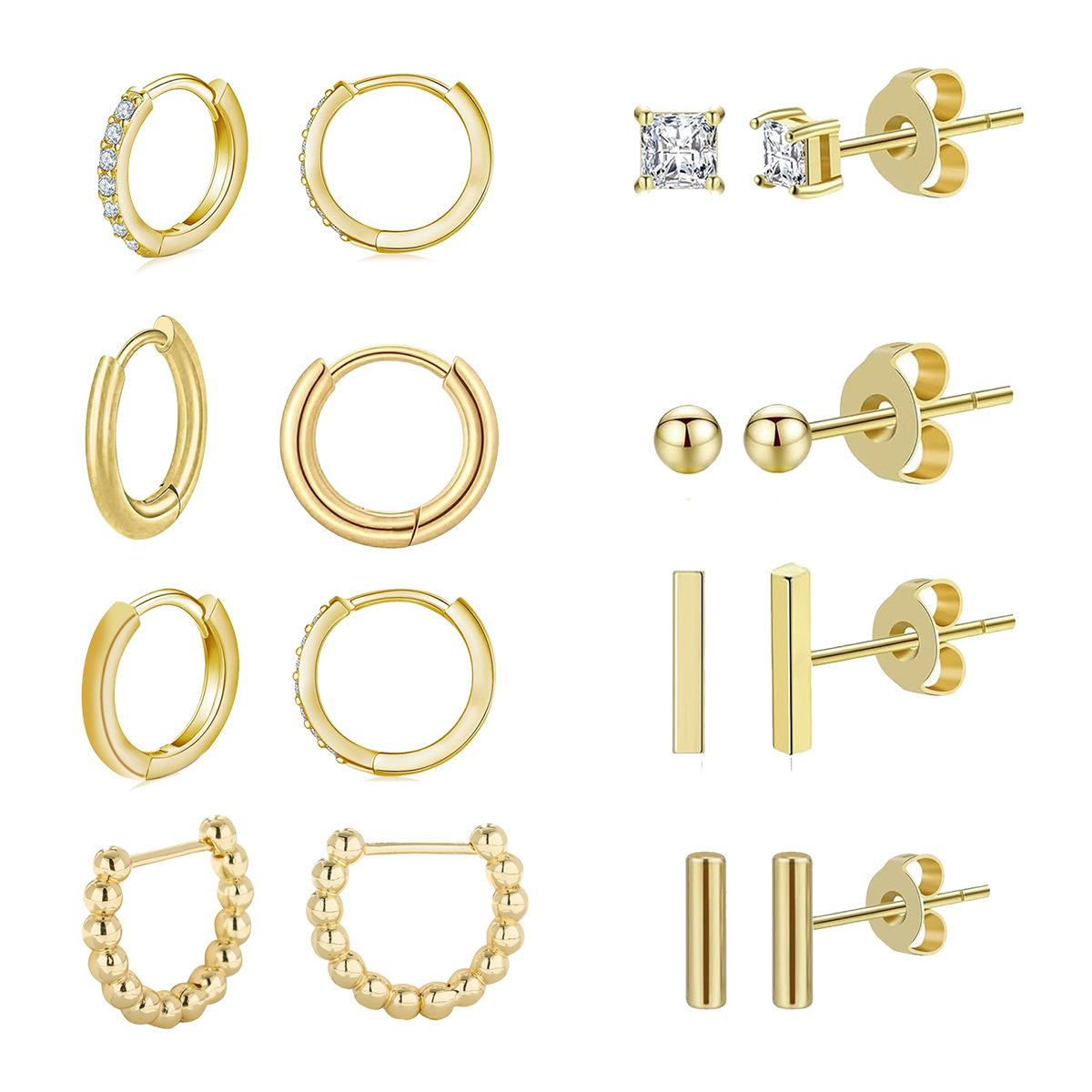 欧米のファッションのレトロな銅の材質の高品質の電気めっきのジルコンの金色の組み合わせの丸い玉の女性のイヤリングの16セット
