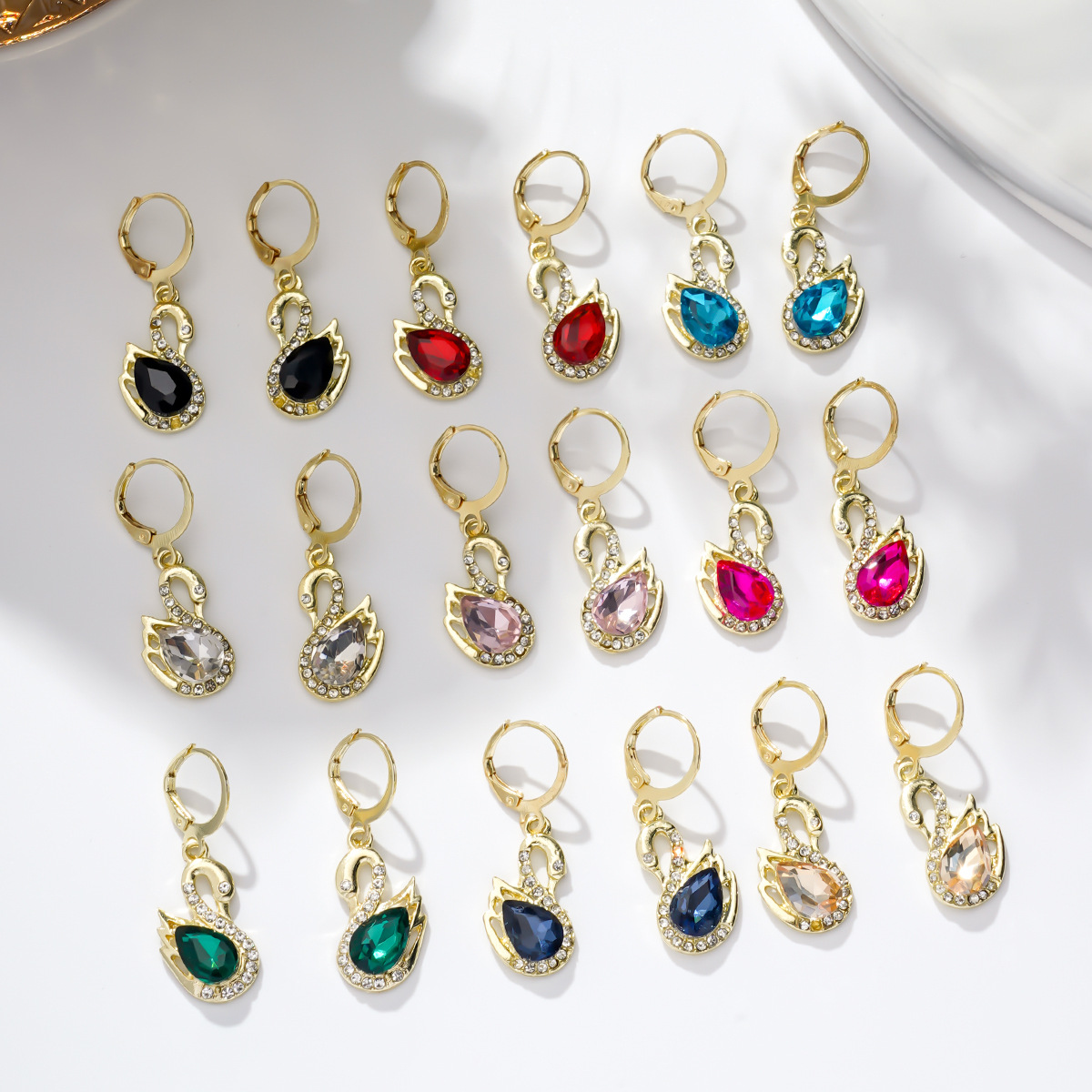 欧米のファッションレトロ個性シンプルな白鳥カラーガラス水滴形イヤリング2点セット