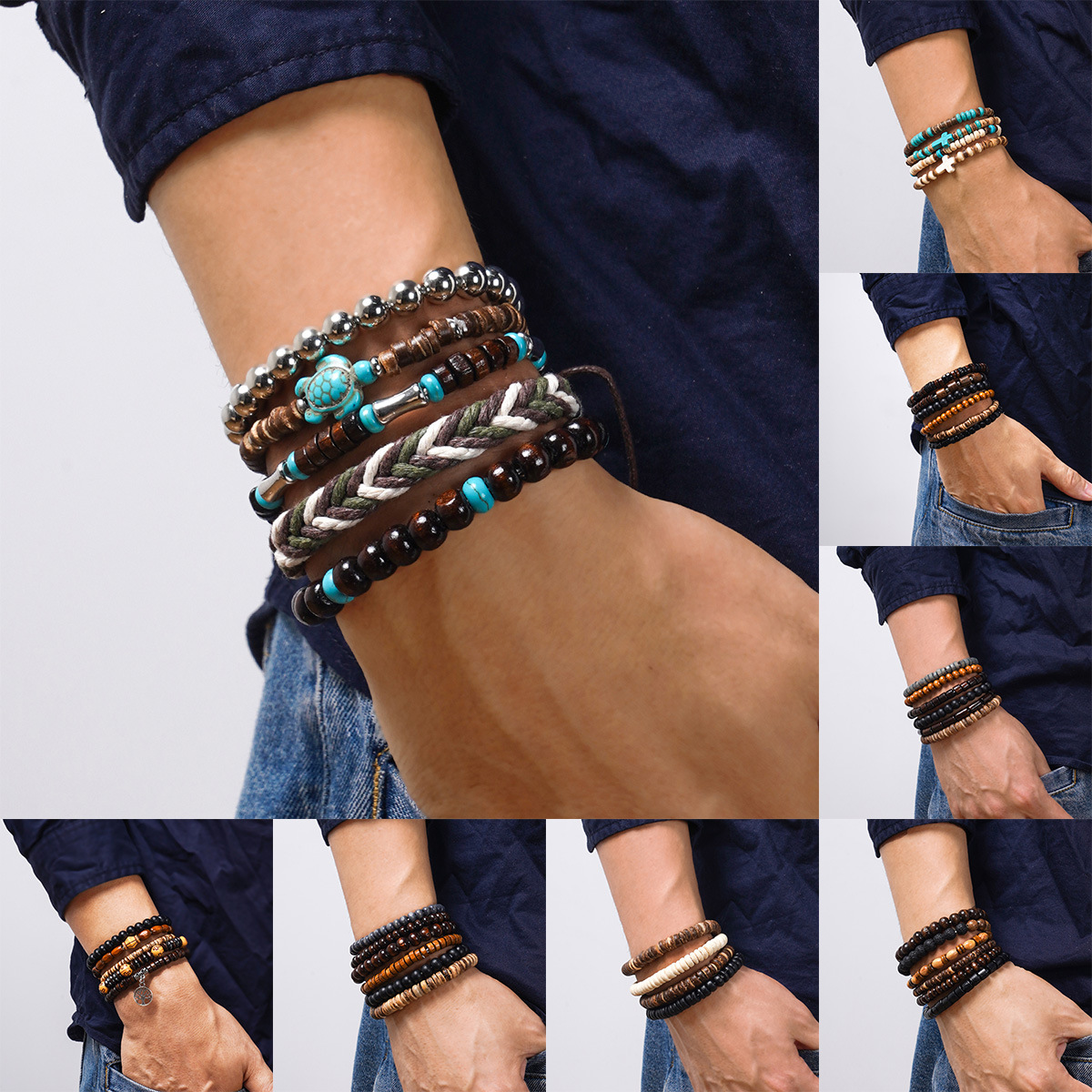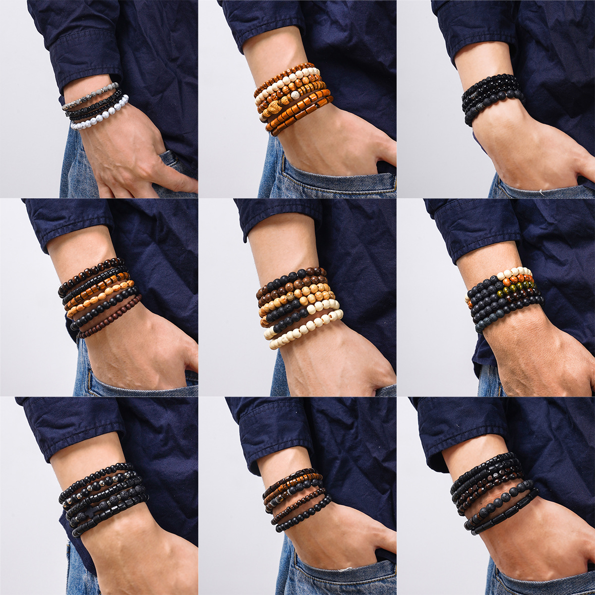欧米のレトロな個性の潮流の新型の木の玉の弾力の線のデザインの手作りの数珠の男性のブレスレットのスーツ