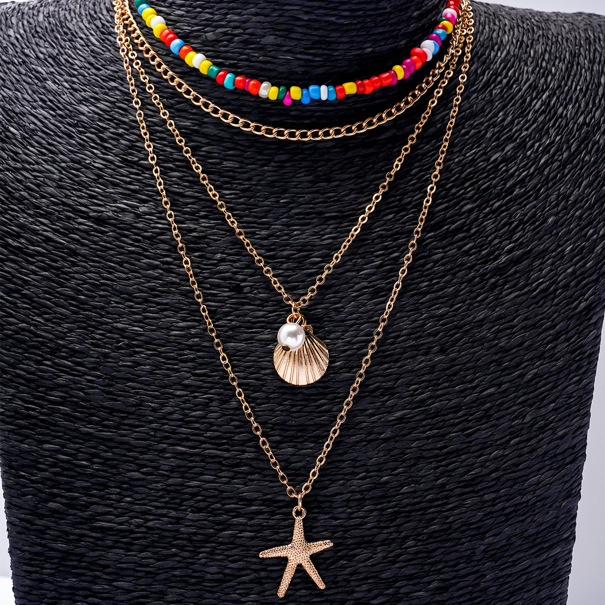 ボヘミアン风ステンドグラス米ビーズ合金ヒトデ貝殻重ね付けネックレスレディースネックレス2点セット
