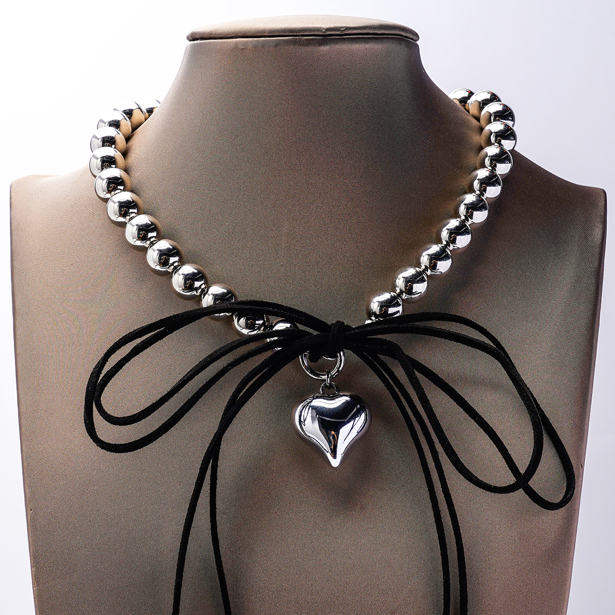 1件の欧米の大衆デザインの甘いクールな風の愛のビーズの蝶結びの首のチェーンの手作りのビーズの女性のネックレス