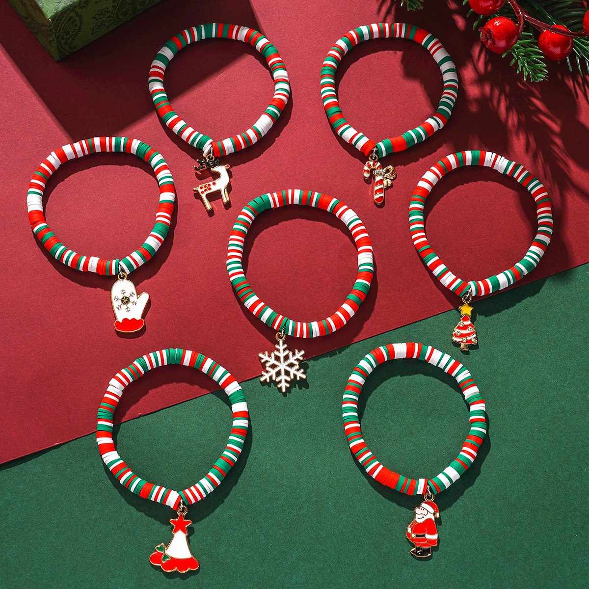 クリスマスのテーマのブレスレットのカラーの柔らかい陶のクリスマスツリーのサンタクロースの雪のヘラジカのビーズの女性のブレスレット