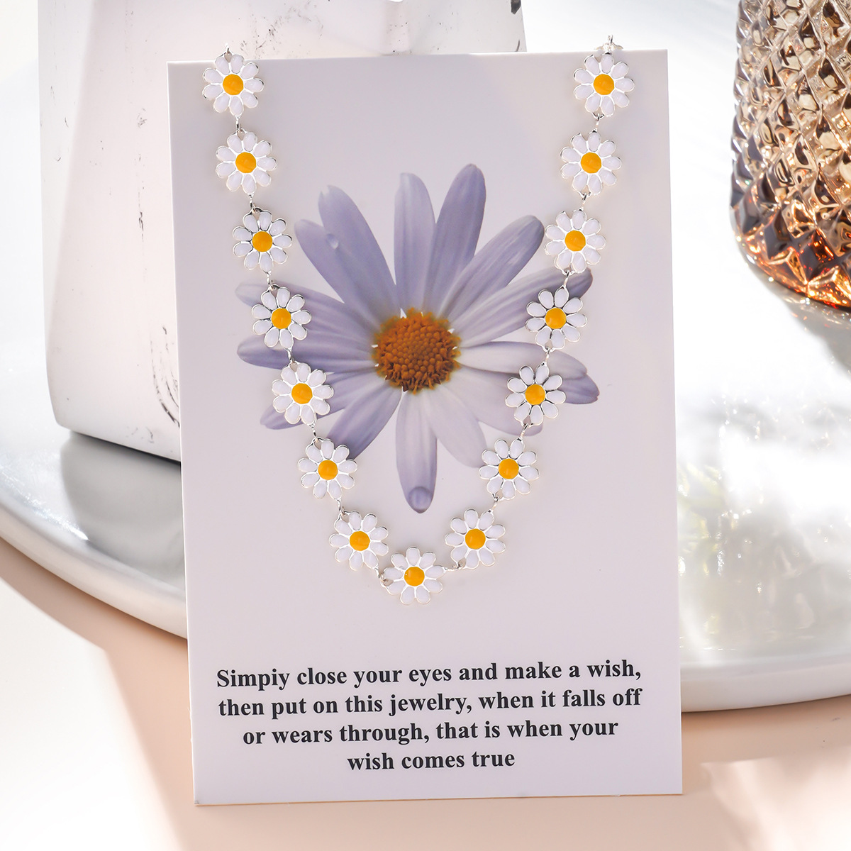 欧米の大衆ファッションの清新で甘い太陽の花のペンダントのデイジーの鎖のチェーンはカードの女性のネックレスを持っています。