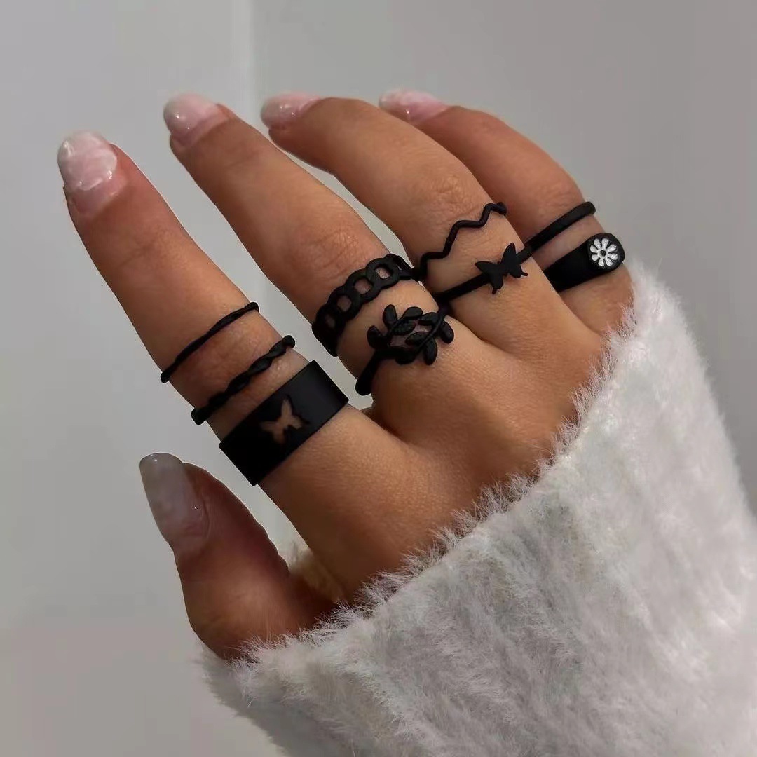 欧米のファッションの簡単な花の蝶の指輪のセットの幾何学の麻の花の葉の透かし彫りの女性の指輪の9セット