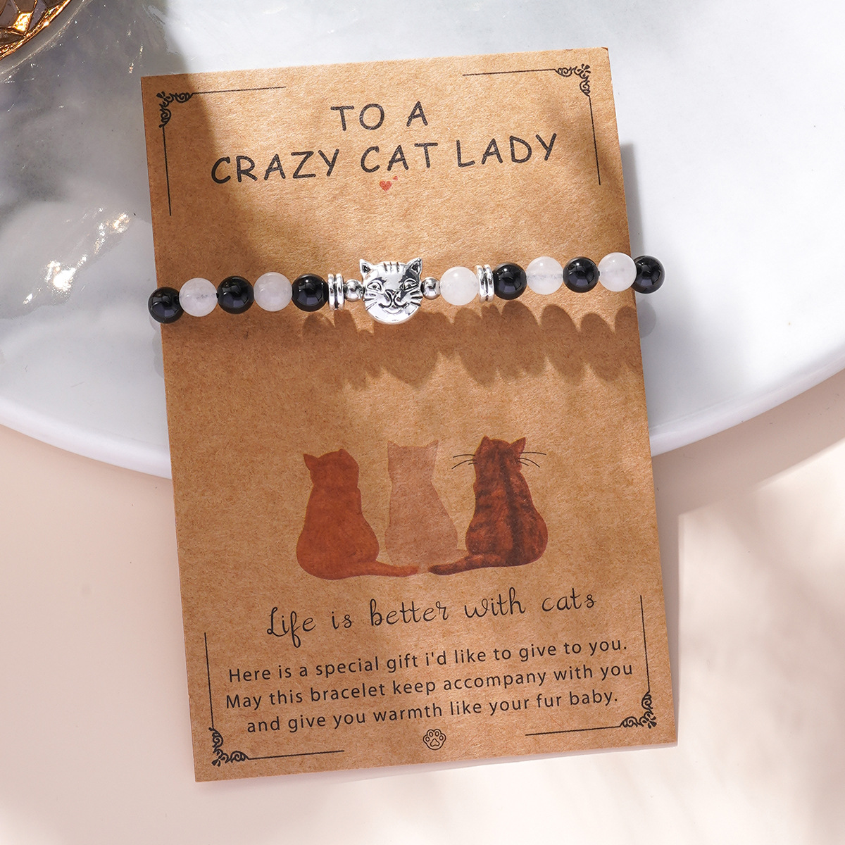 欧米のハロウィンの新型の合金の猫のペンダントの手作りのガラスの数珠は女性を伸ばしてブレスレットを編むことができます。