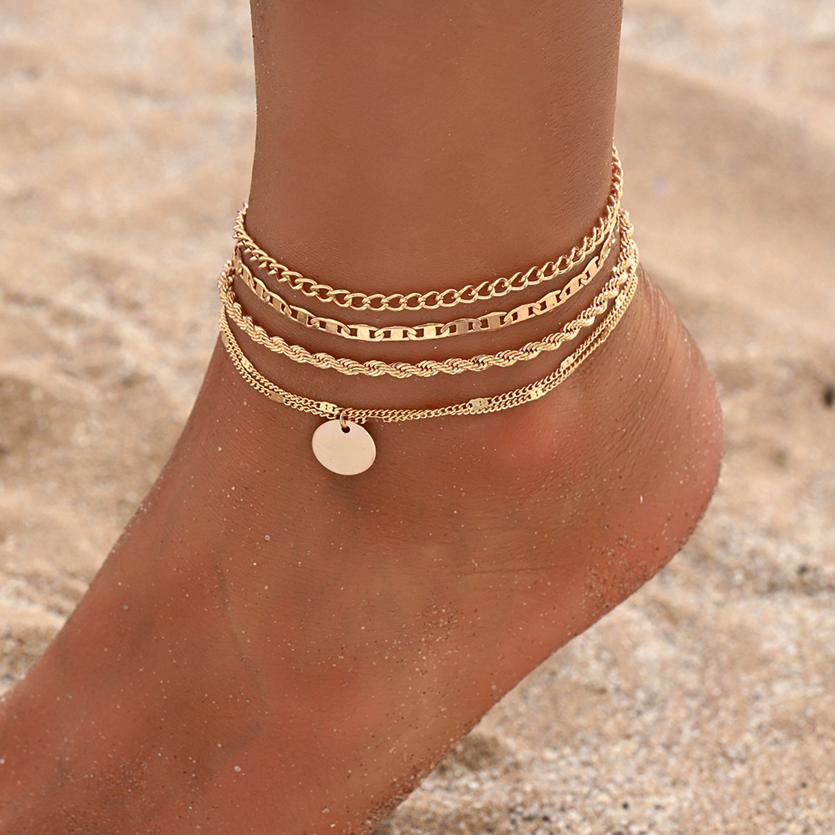 欧米のファッションシンプルなレトロなビーチの足のチェーンの金色のチェーンの丸い鉄の女性の足のチェーンのセット