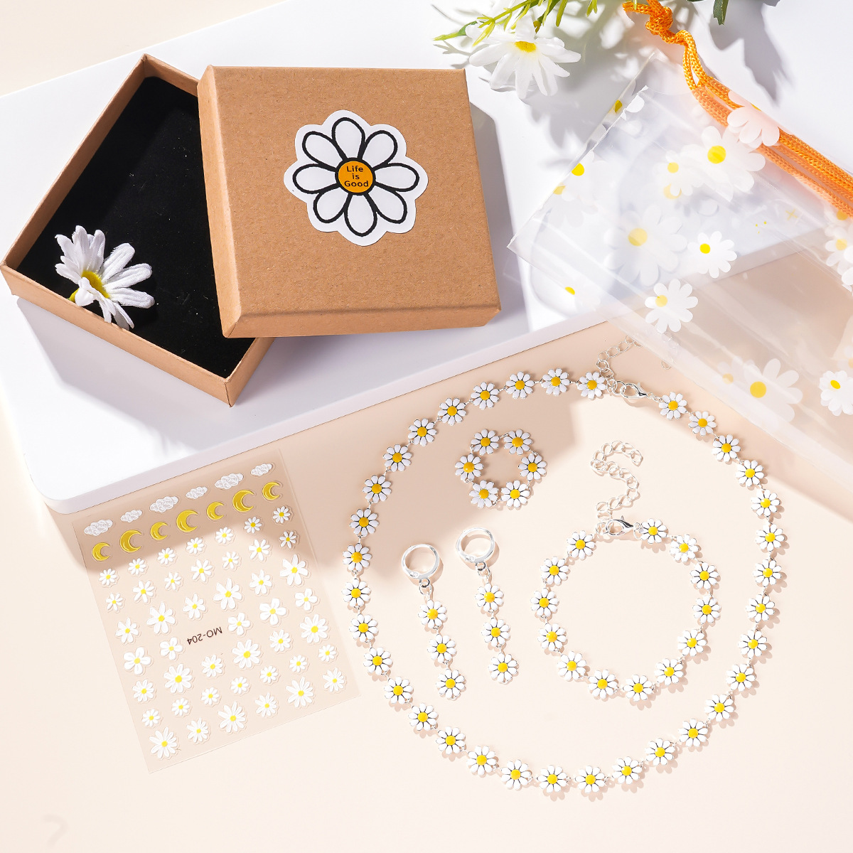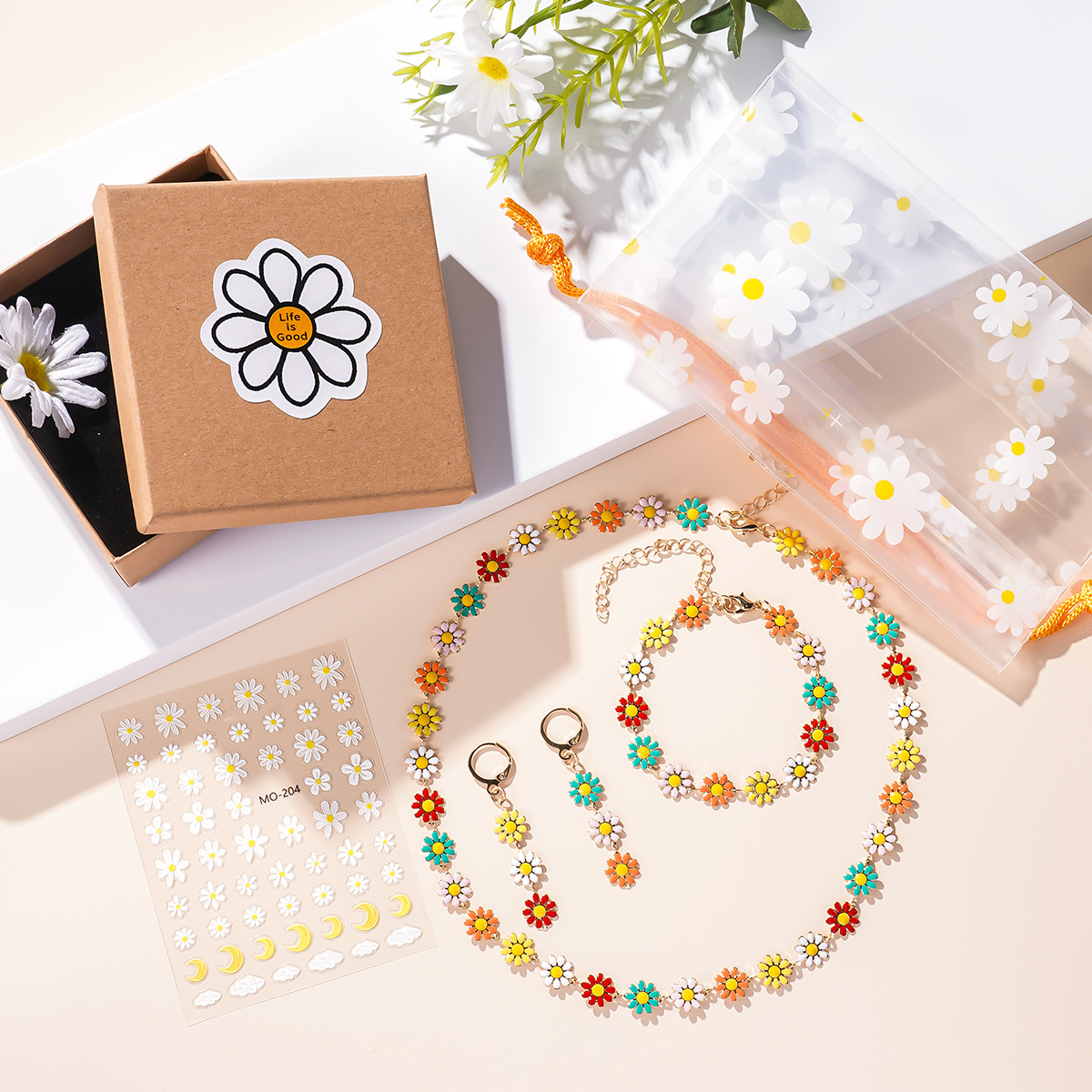 ボヘミアン風フレッシュで甘いカラー滴油デイジー合金花ネックレスイヤリングブレスレットセット