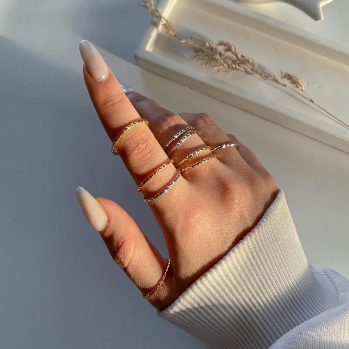 欧米のファッションデザイン感ins風金色円戒閉口シンプルな細いリング星芒指輪レディース指輪7点セット