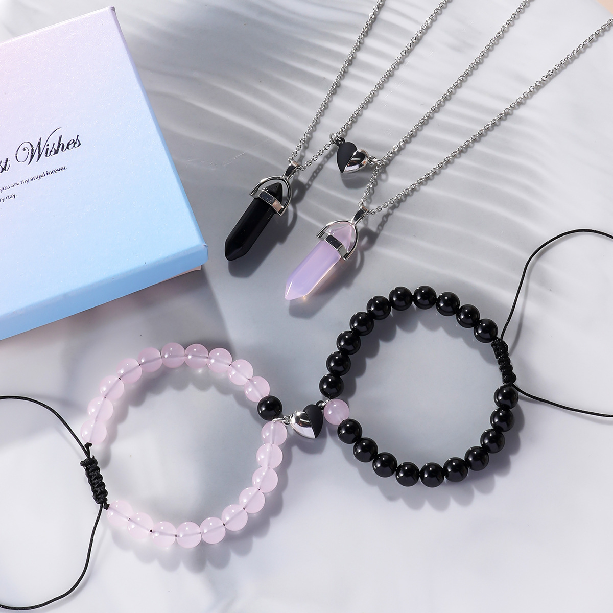 4つの個性的な風潮の粉晶石の黒曜石の愛の磁気はビーズのブレスレットの六角柱のペンダントのアクセサリーのセットを掛けます。