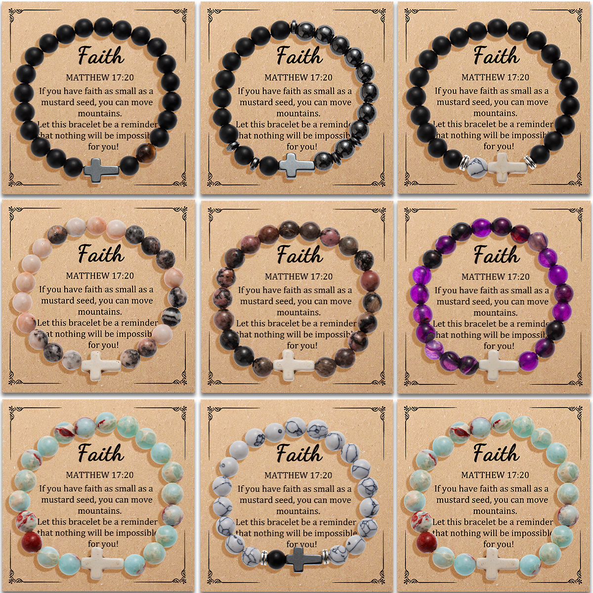 1本の十字の部品の石のブレスレットの黒色のすり石の手作りの数珠はカードの祝福の言葉を持ちます。