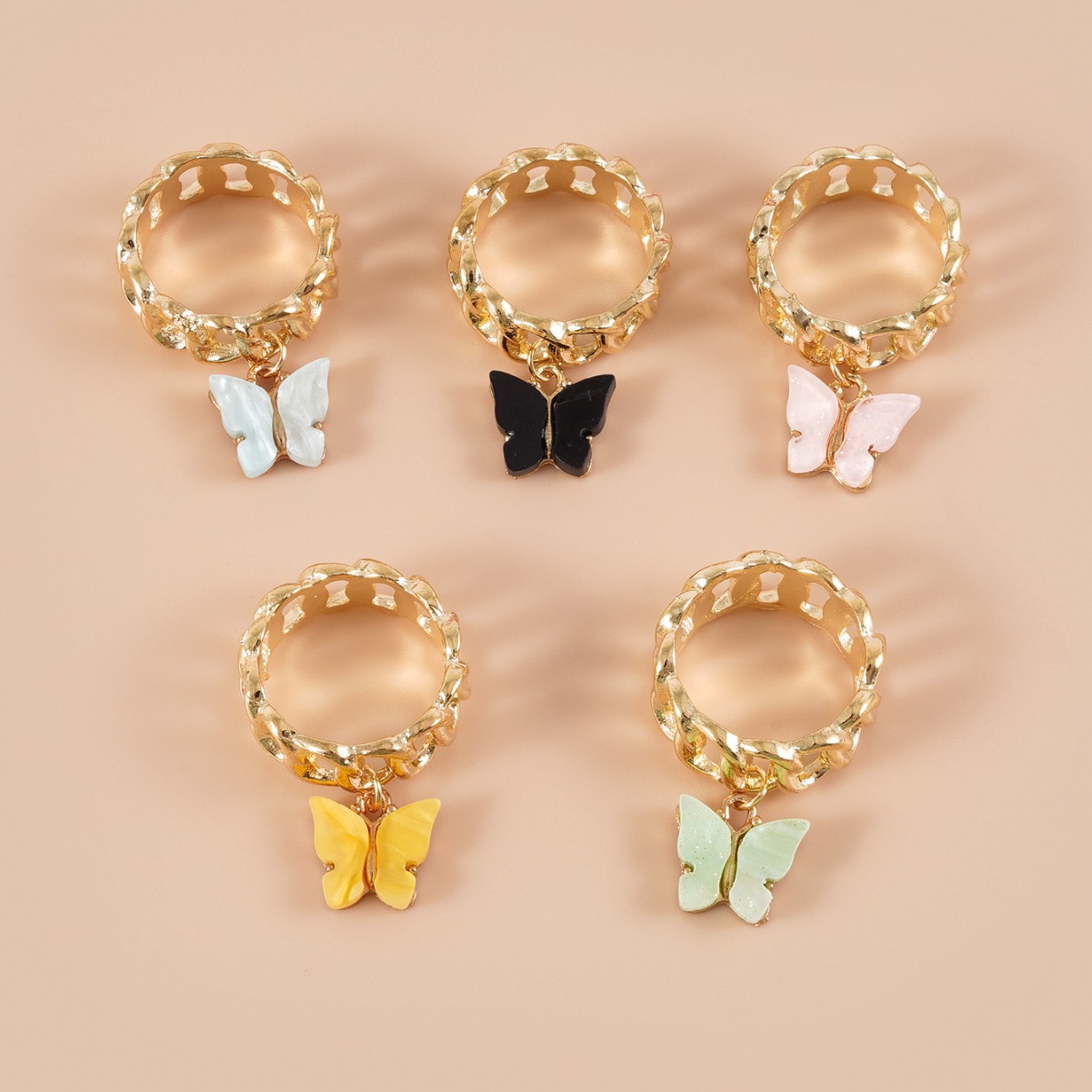 ファッションクロスボーダーアマゾン热い贩売5つ蝶カラープレートチェーンスタイルレディースリングセット