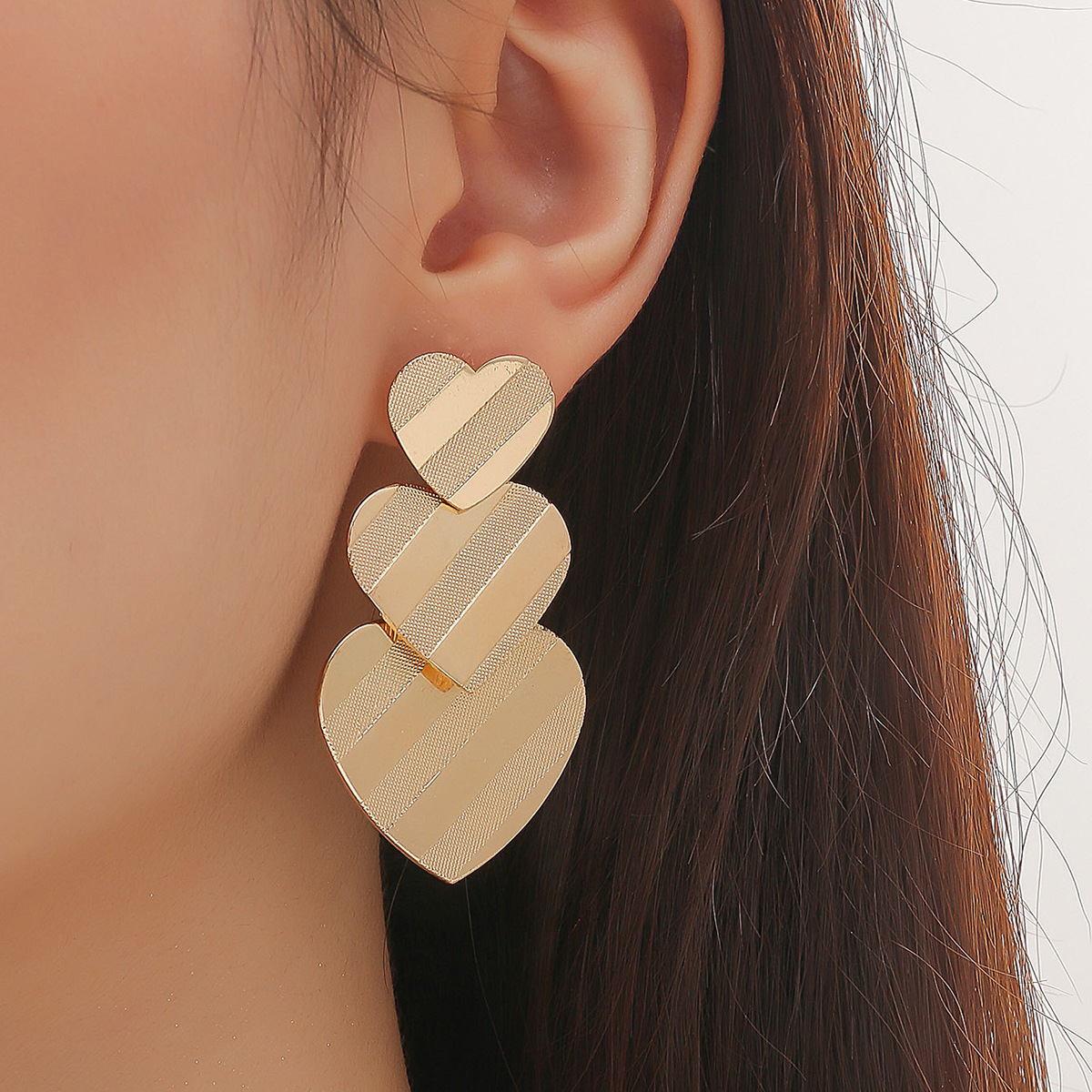 クロスボーダーの人気レディース三連ハート型の耳飾り愛三段のツイル