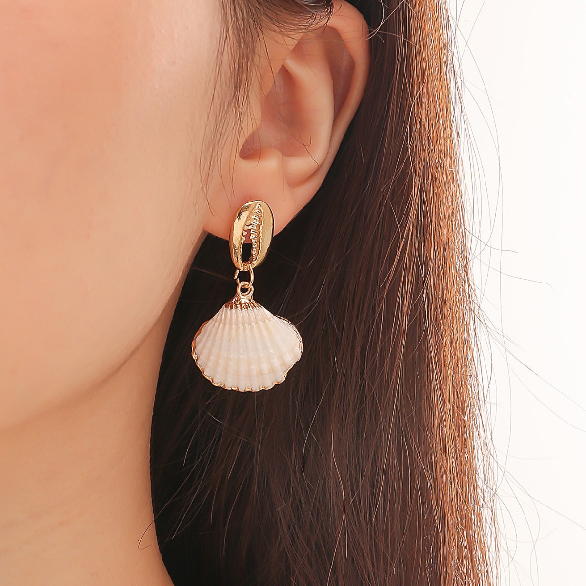 クロスボーダーの人気天然貝殻耳飾り扇形の金辺貝殻のイヤリングメッキ貝殻合金のピアス