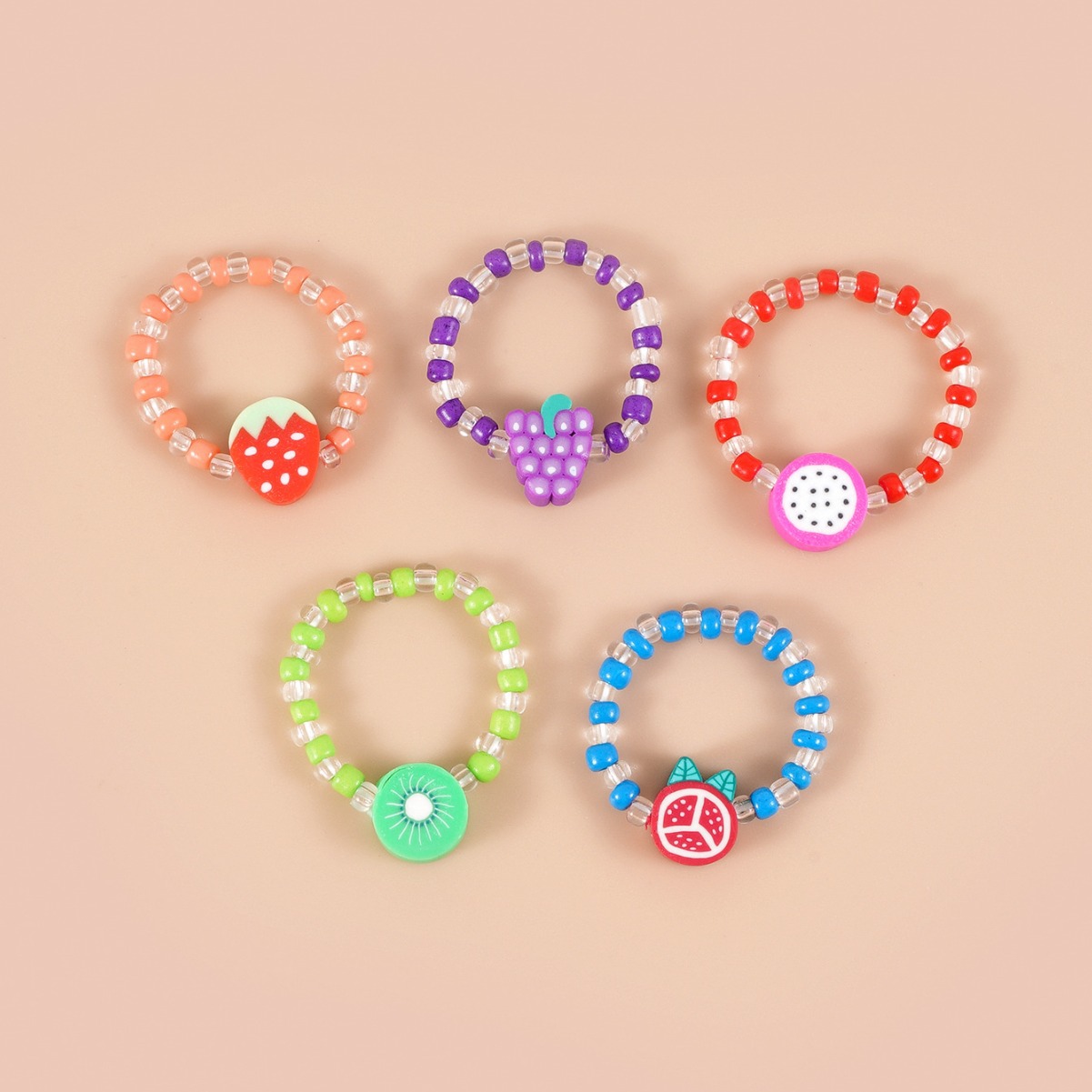 アマゾン热い贩売カラー米ビーズ古典的なシンプルなソフト陶器フルーツ手作りビーズリングリングリングリングセット