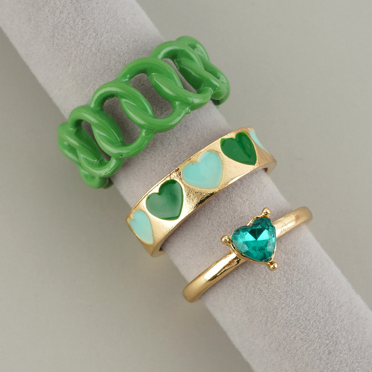 国境を越えて人気のあるクリエイティブ合金愛滴油復古的な緑のドリルリング3セットの指輪