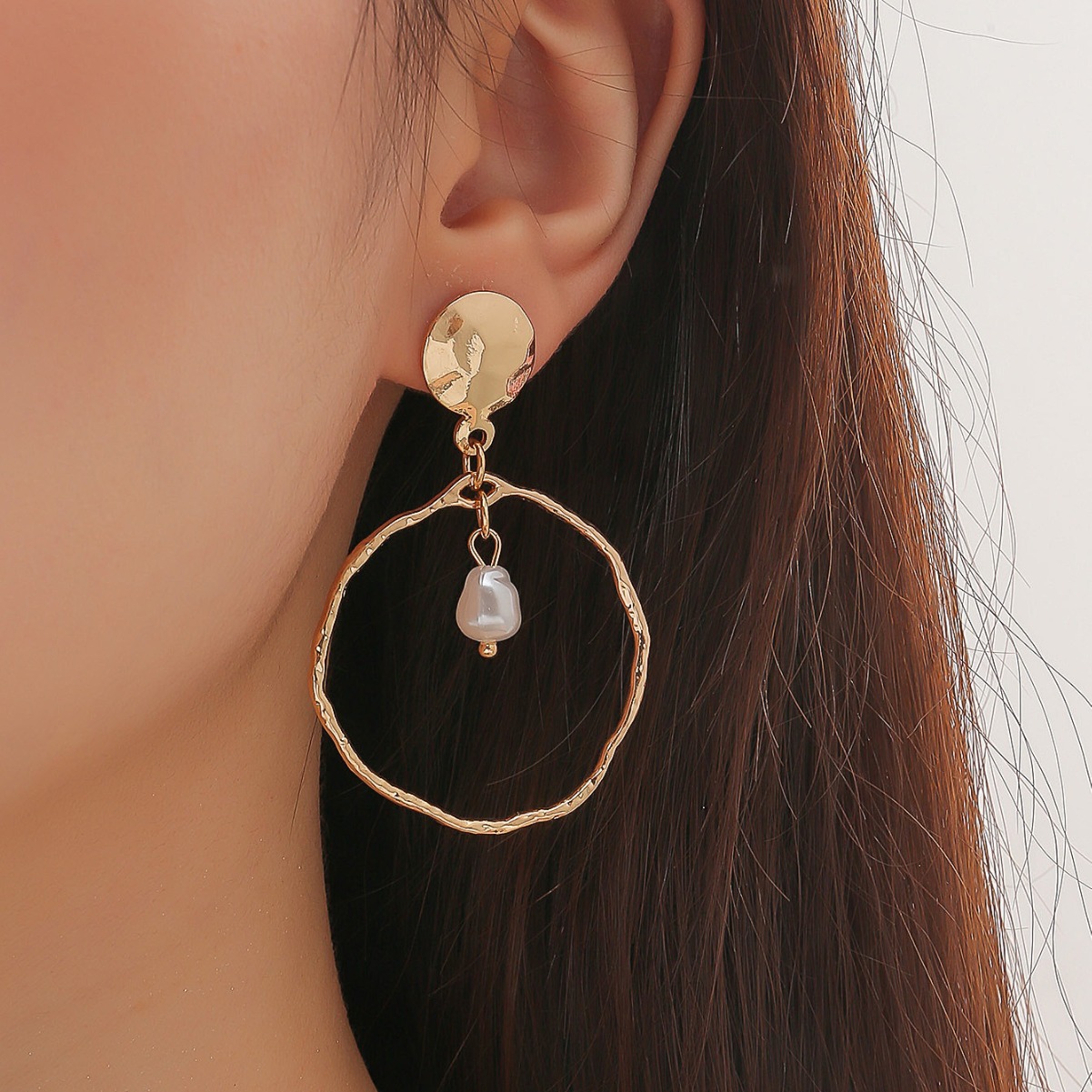 アマゾンの新型女性のシンプルなイヤリングの不規則なイヤリングの幾何学の合金の円の異形の真珠のイヤリング