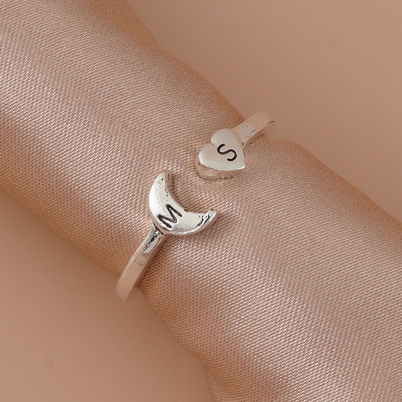 クロスボーダーの人気シンプルなスタイルの英語のアルファベットの文字はレトロで、女性の指輪を1つ調節できます。