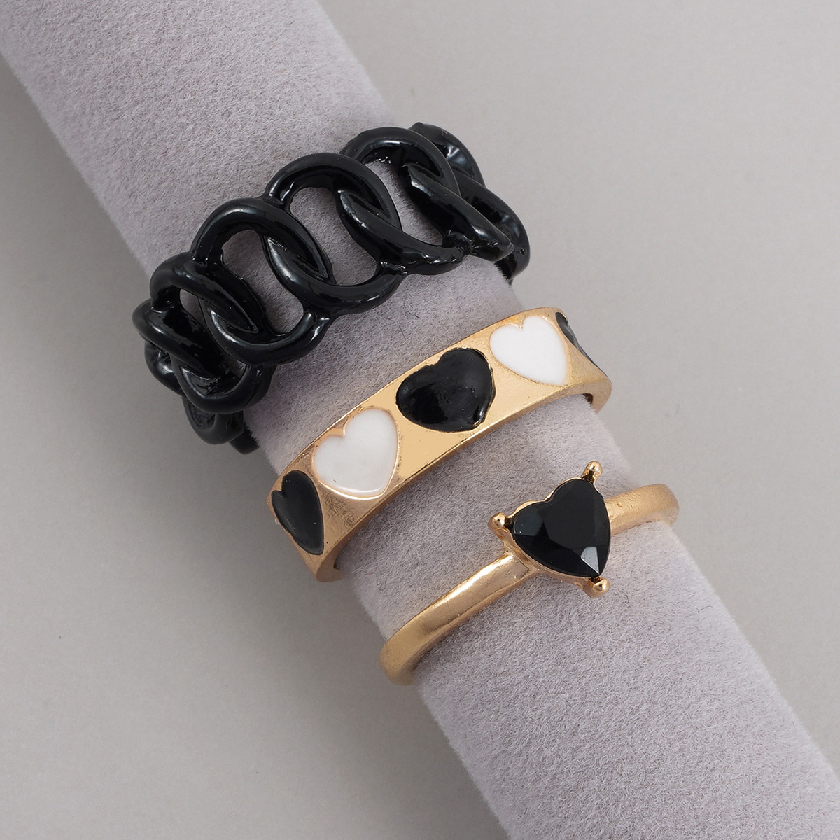 国境を越えて人気のあるクリエイティブ合金愛滴油復古黒色ドリル指輪3点セット指輪