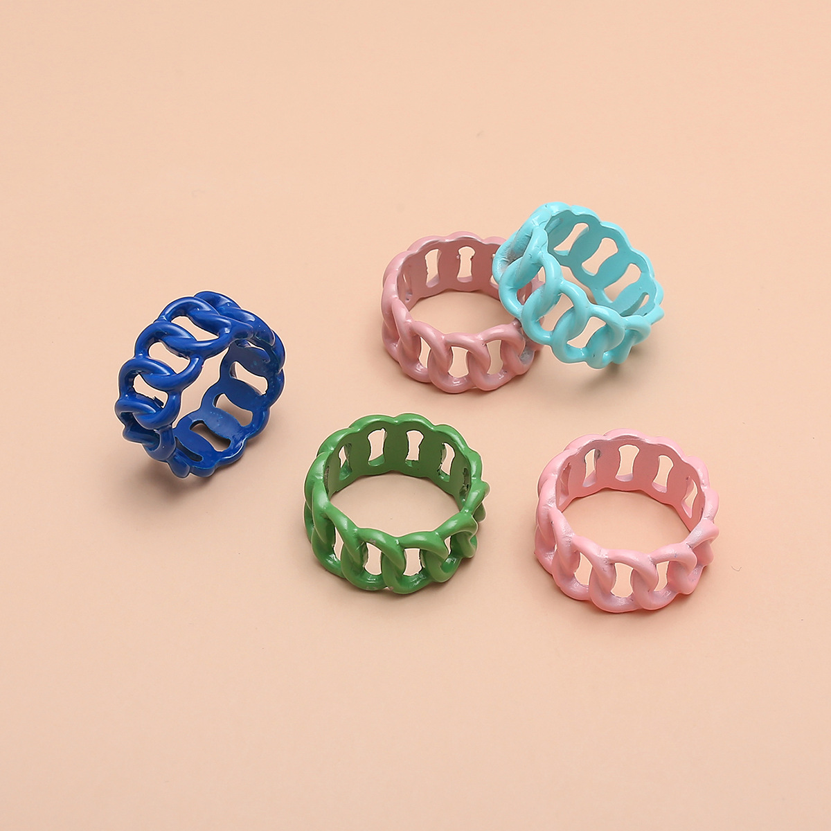 クロスボーダー热売り超流行マカロン色焼付漆工芸レディースリング5个セット