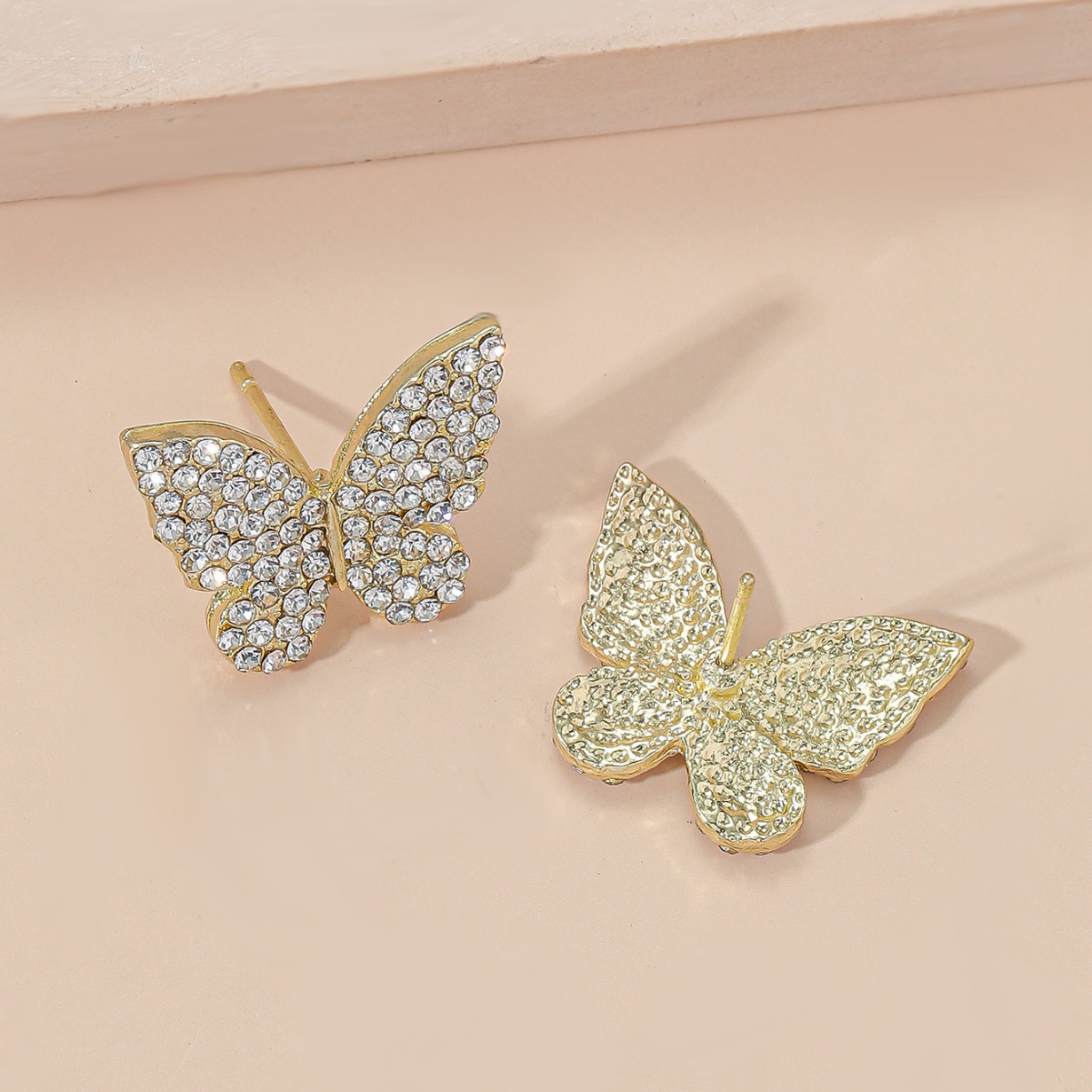 クロスボーダー高級気質蝶女性耳飾りメッキ合金満ドリル蝶ピアス