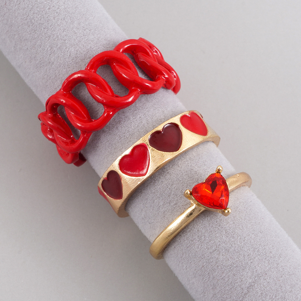 国境を越えて人気のあるクリエイティブ合金愛滴油レトロな赤いドリルの指輪3セットの指輪