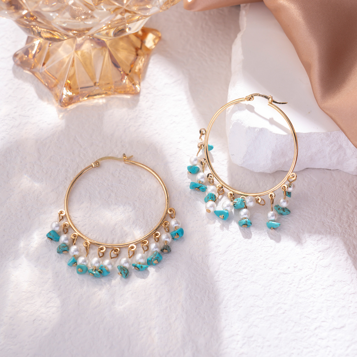 ボヘミアンの新しい天然の緑の砂利の大きい耳輪の真珠のファッションの女性のイヤリングの1対