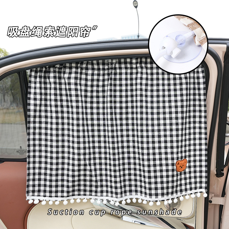 車用サンシェード サイドカーテン 漫画柄 コットンチェック柄 クマ柄 車用カーテン 夏用 日よけ 断熱 車載サンシェード