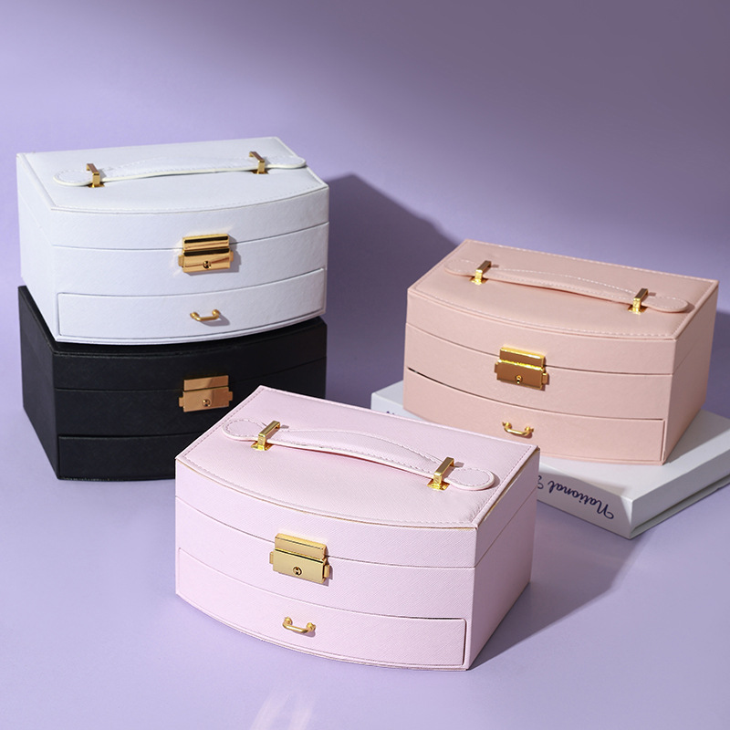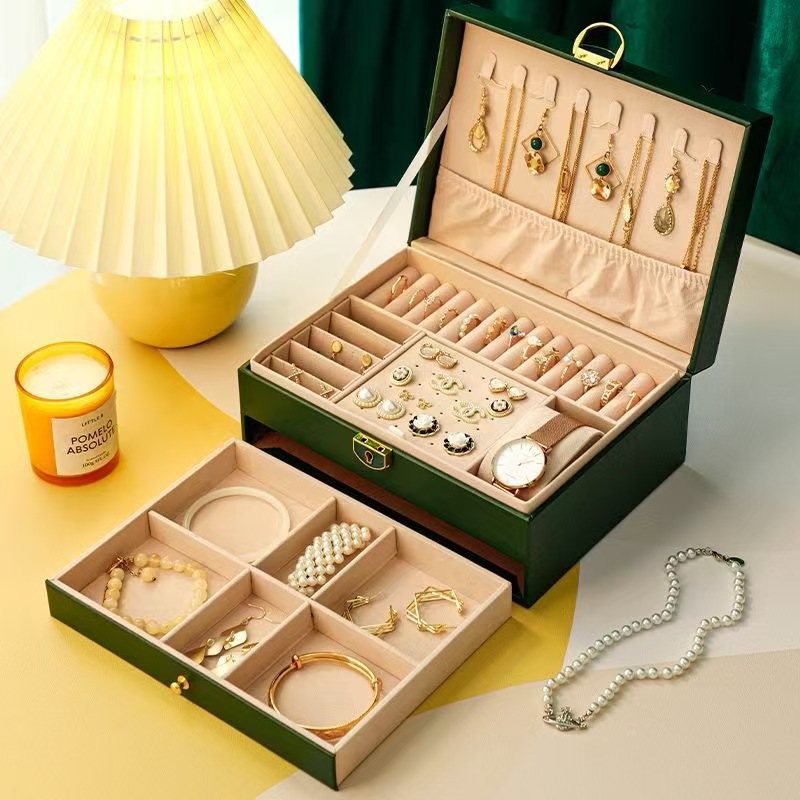 軽量高級二層レザージュエリーボックス、子供用ギフトジュエリー収納ボックス、イヤリング、指輪、ネックレス、ジュエリーボックス、引き出しタイプ