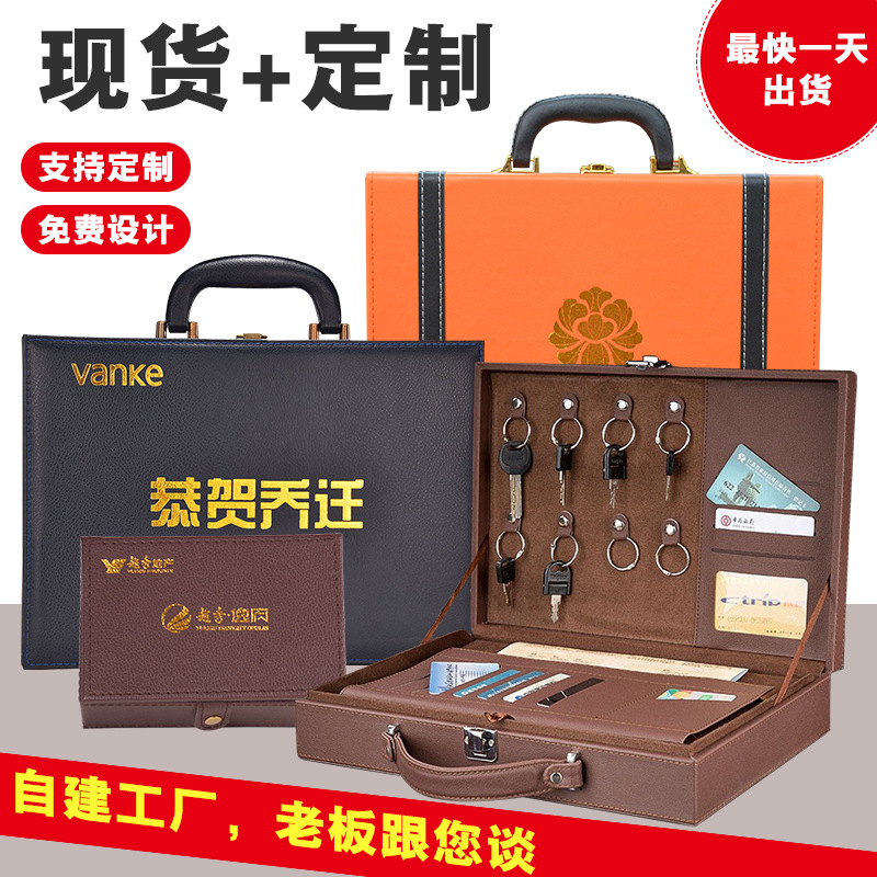 現物の部屋渡し箱のビルは高級の皮質の鍵の礼箱の不動産の金属の道具箱の不動産の部屋渡し箱を渡します。