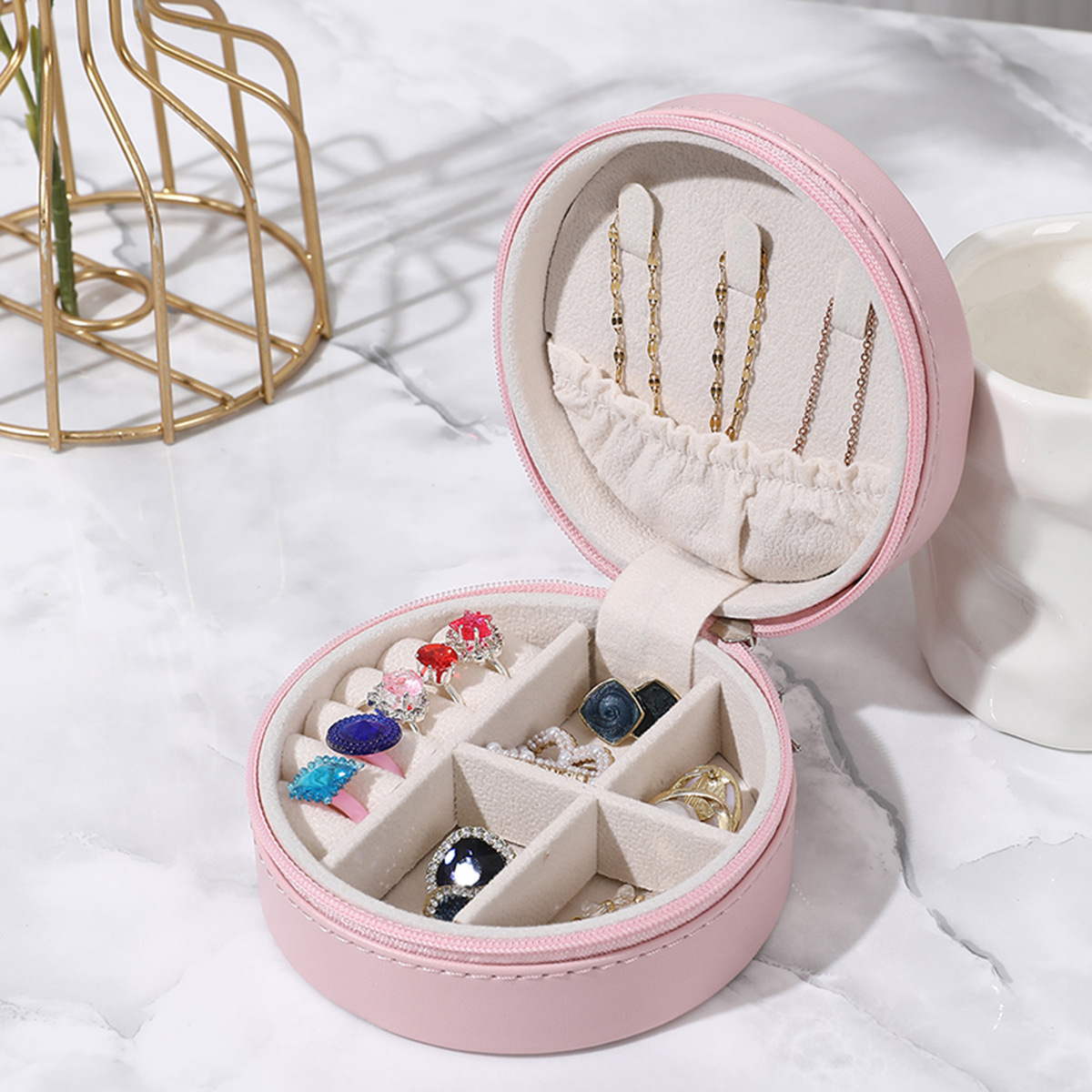 国潮ins風携帯手飾り収納ケース皮質円形ネックレス指輪アクセサリーケース家庭用アクセサリー収納ケース